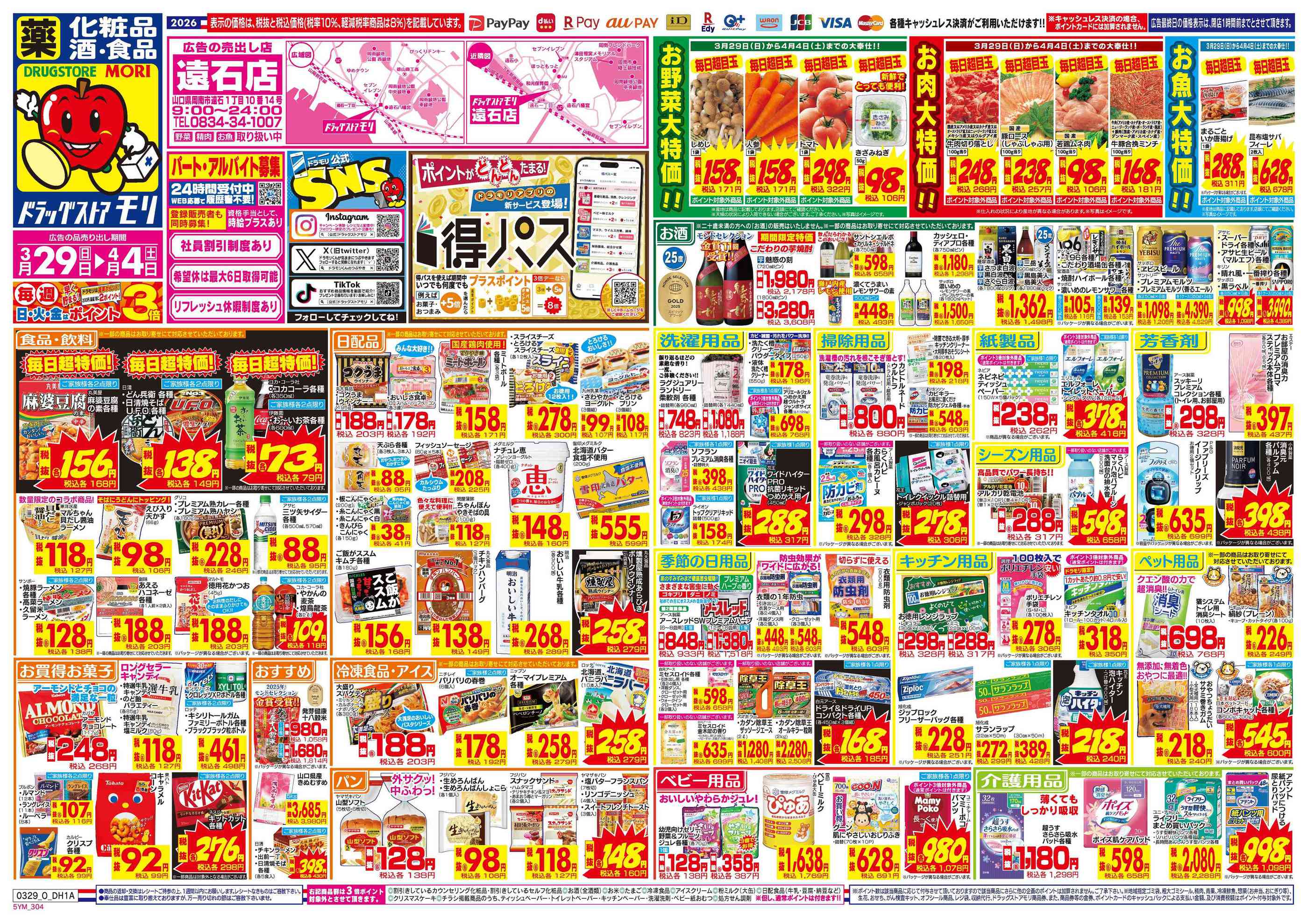 ドラッグストアモリ遠石店今週のチラシ(2026年3月30日〜4月5日)
