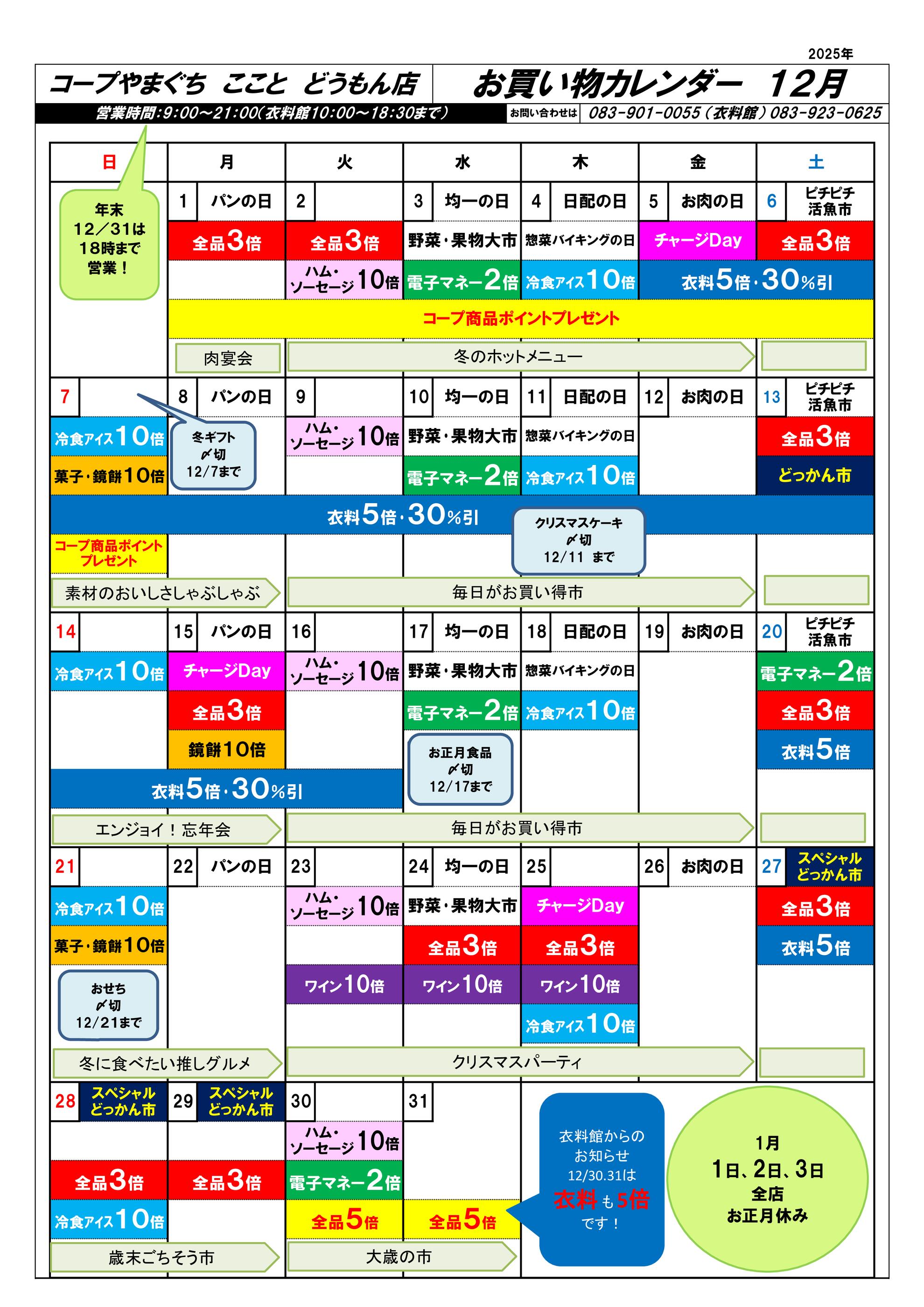 コープこことどうもん店今週のチラシ(2025年12月29日〜1月4日)