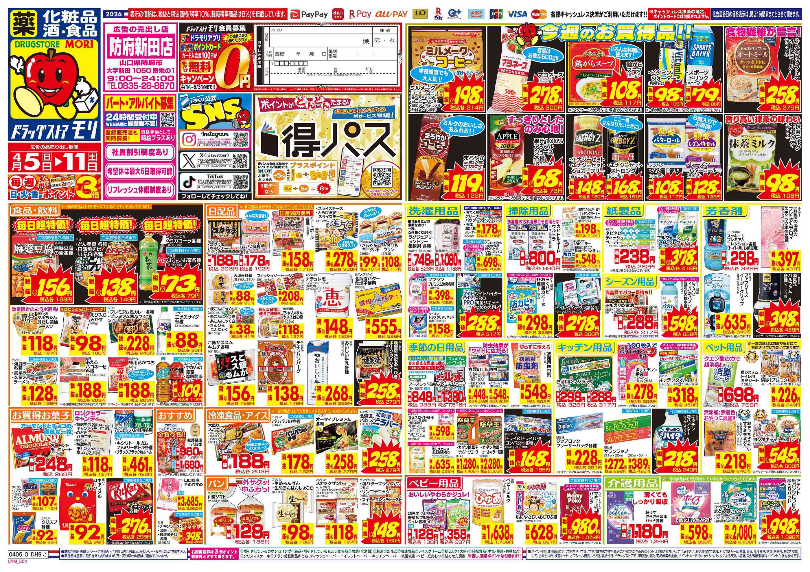 ドラッグストアモリ防府新田店今週のチラシ(2026年4月6日〜4月12日)