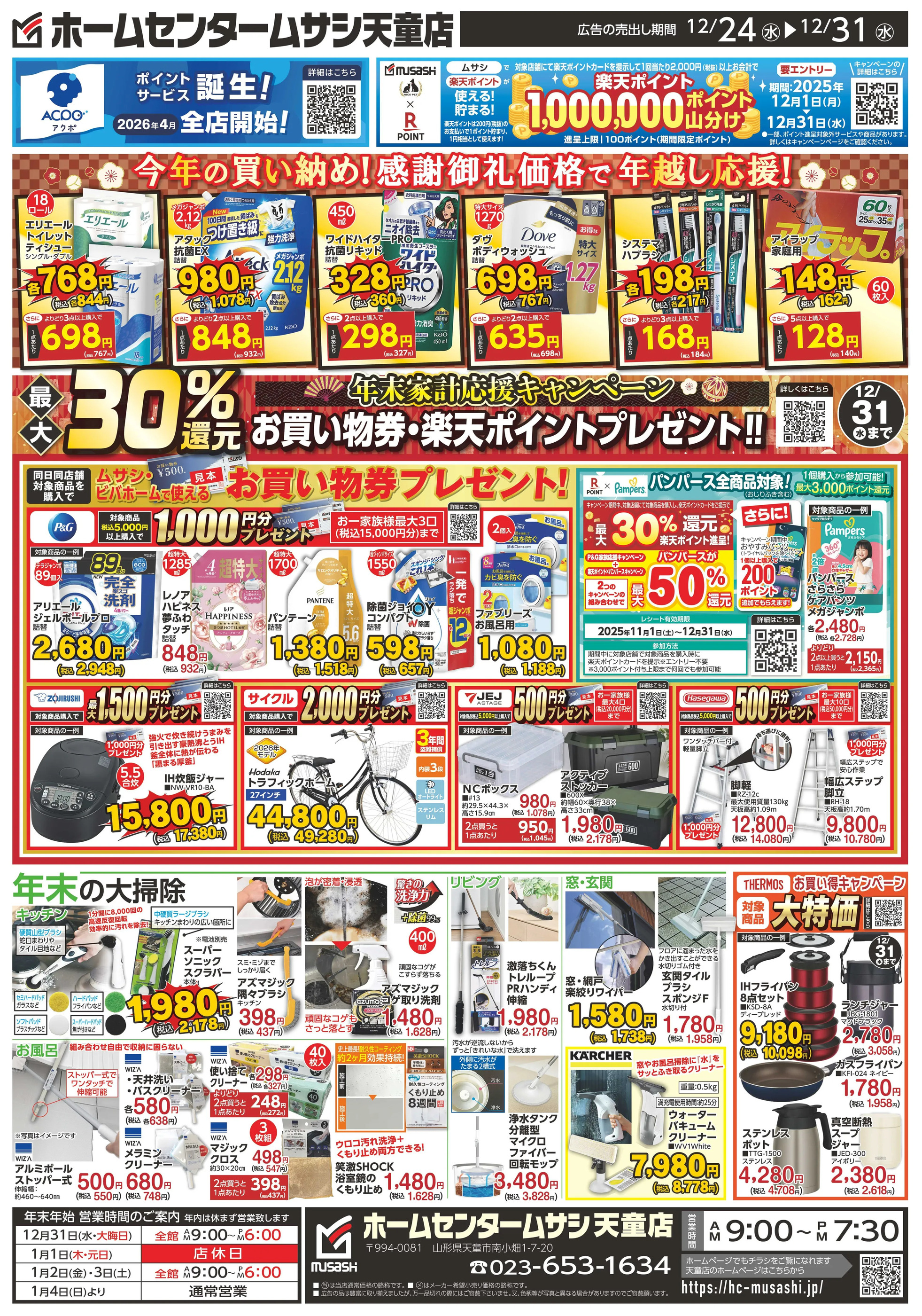 ホームセンタームサシ天童店今週のチラシ(2025年12月29日〜1月4日)