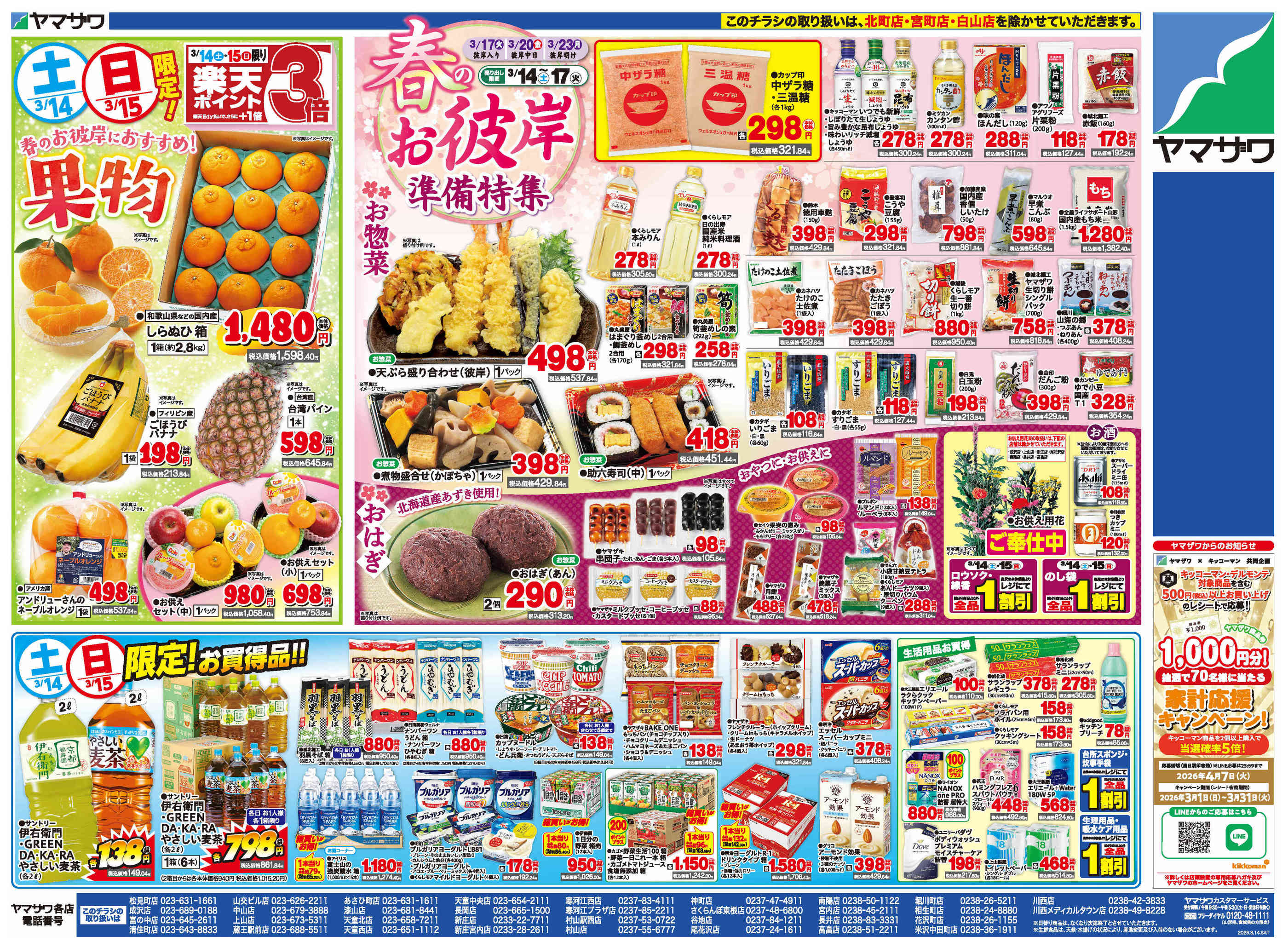 ヤマザワ寒河江プラザ店今週のチラシ(2026年3月9日〜3月15日)
