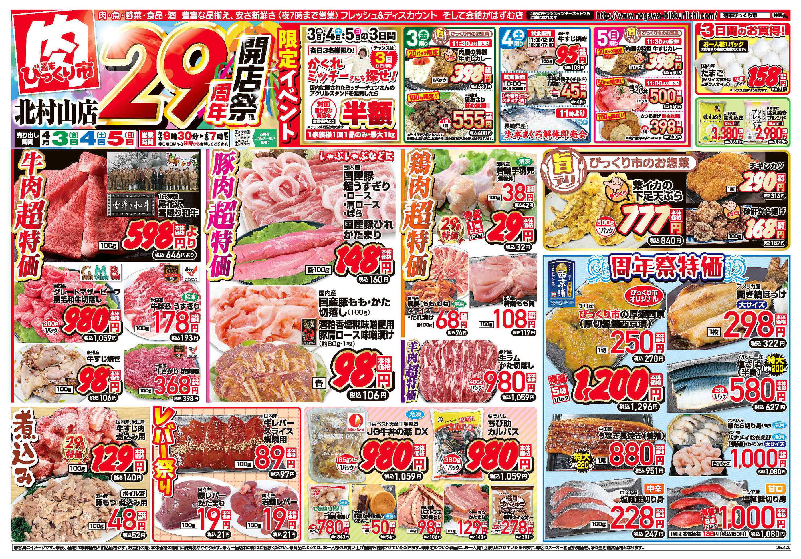 週末びっくり市北村山店今週のチラシ(2026年4月6日〜4月12日)
