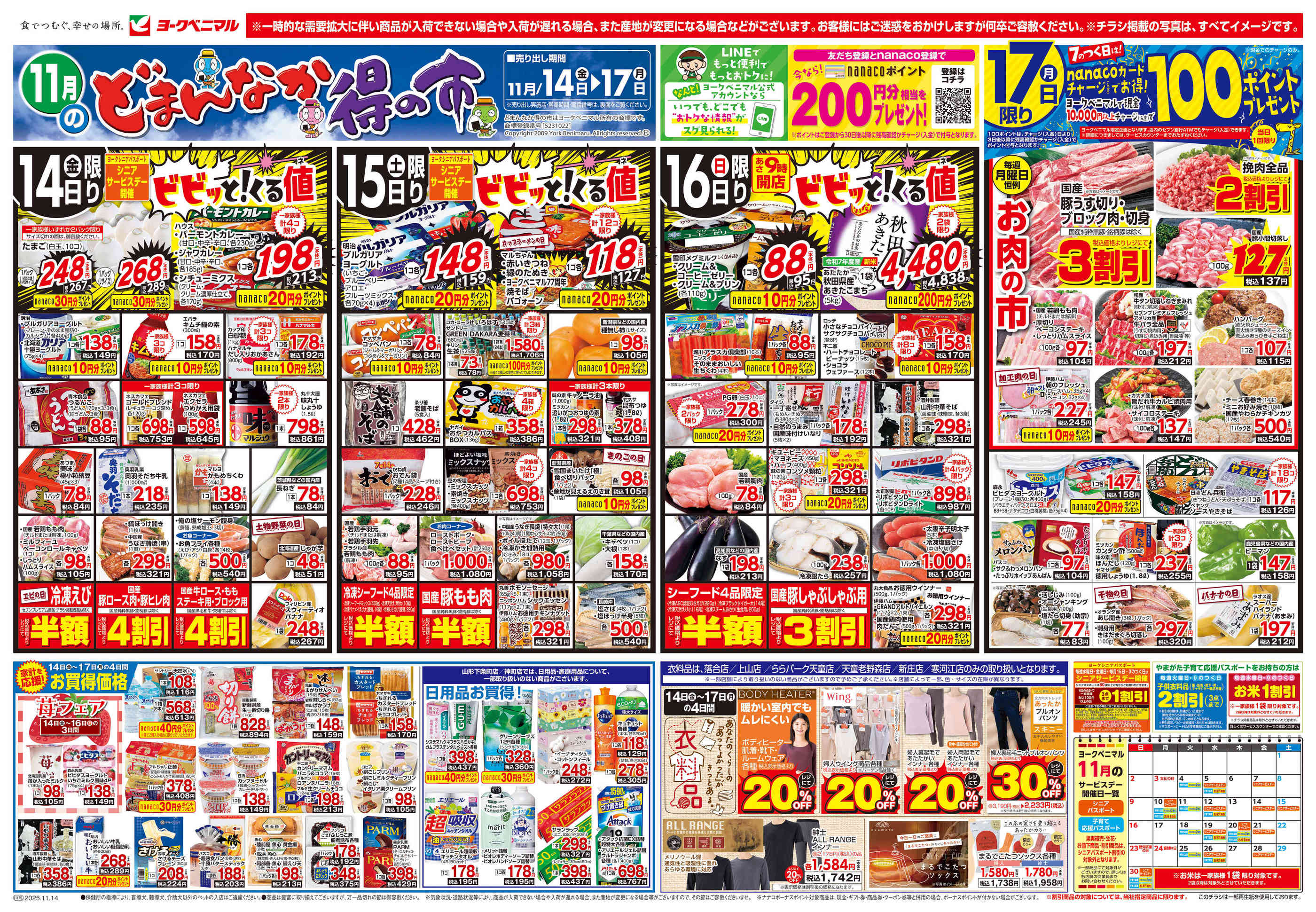 ヨークベニマル山形嶋店今週のチラシ(2025年11月10日〜11月16日)