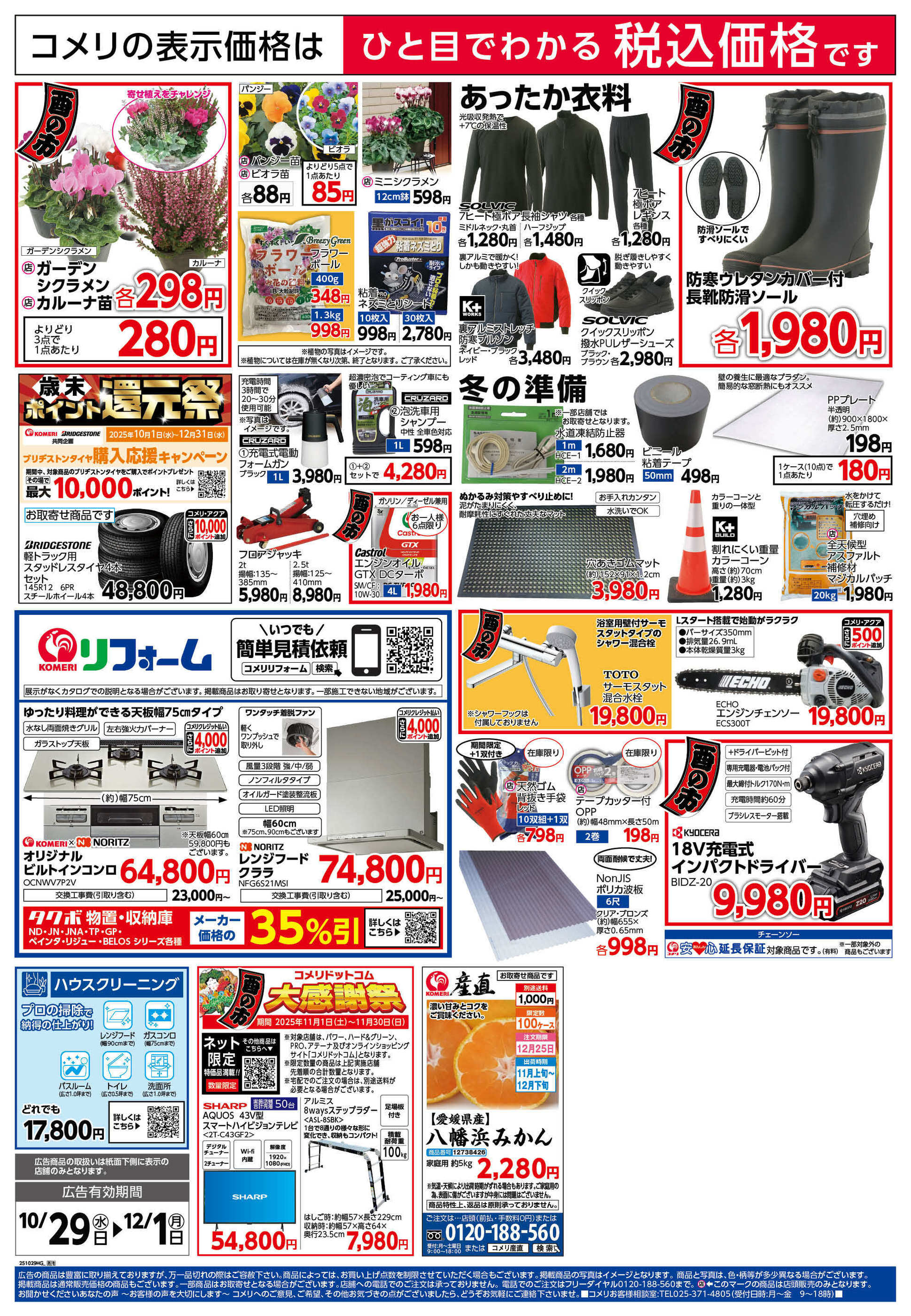 コメリハード&グリーン中山店今週のチラシ(2025年10月27日〜11月2日)