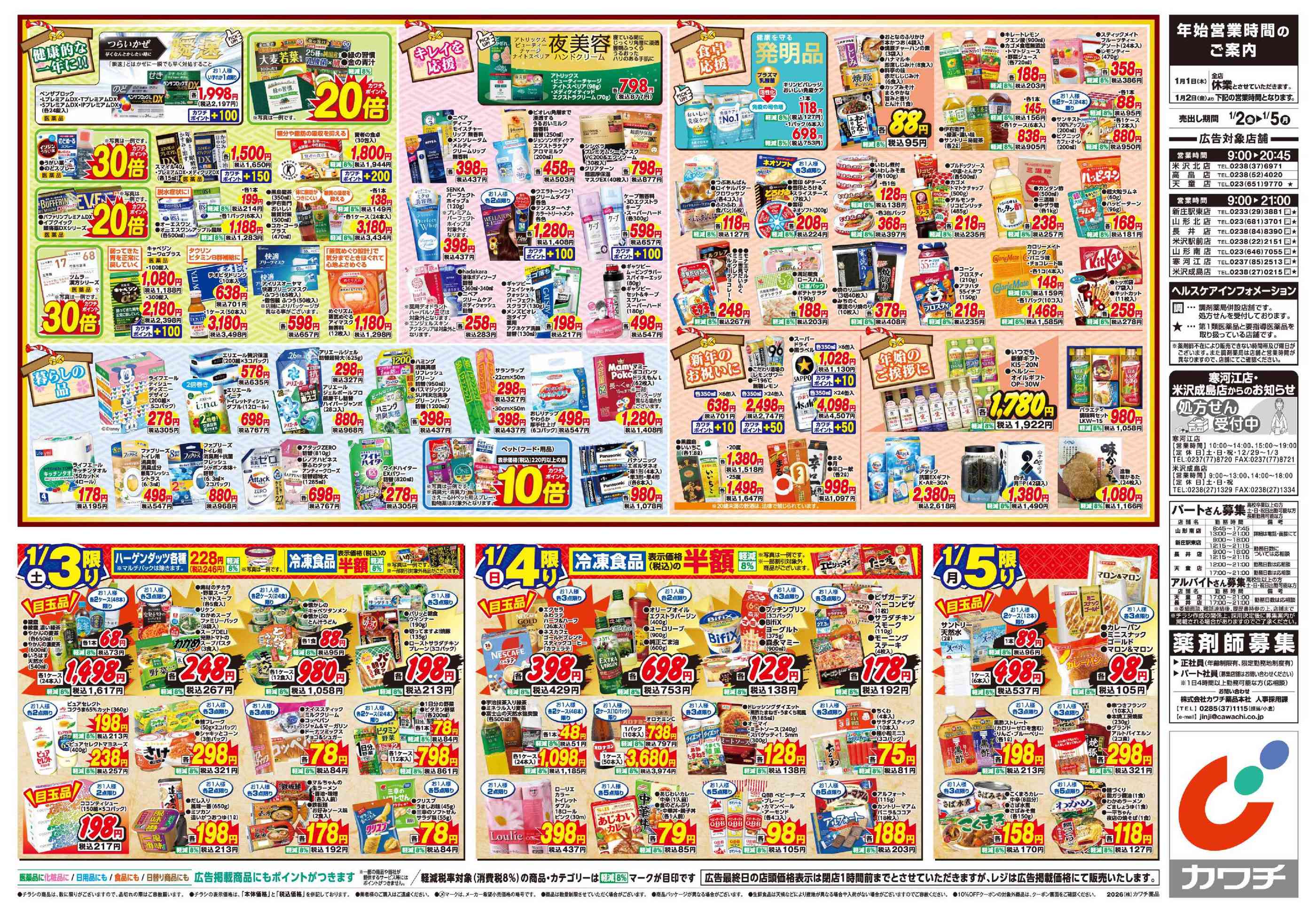 カワチ薬品高畠店今週のチラシ(2026年1月5日〜1月11日)