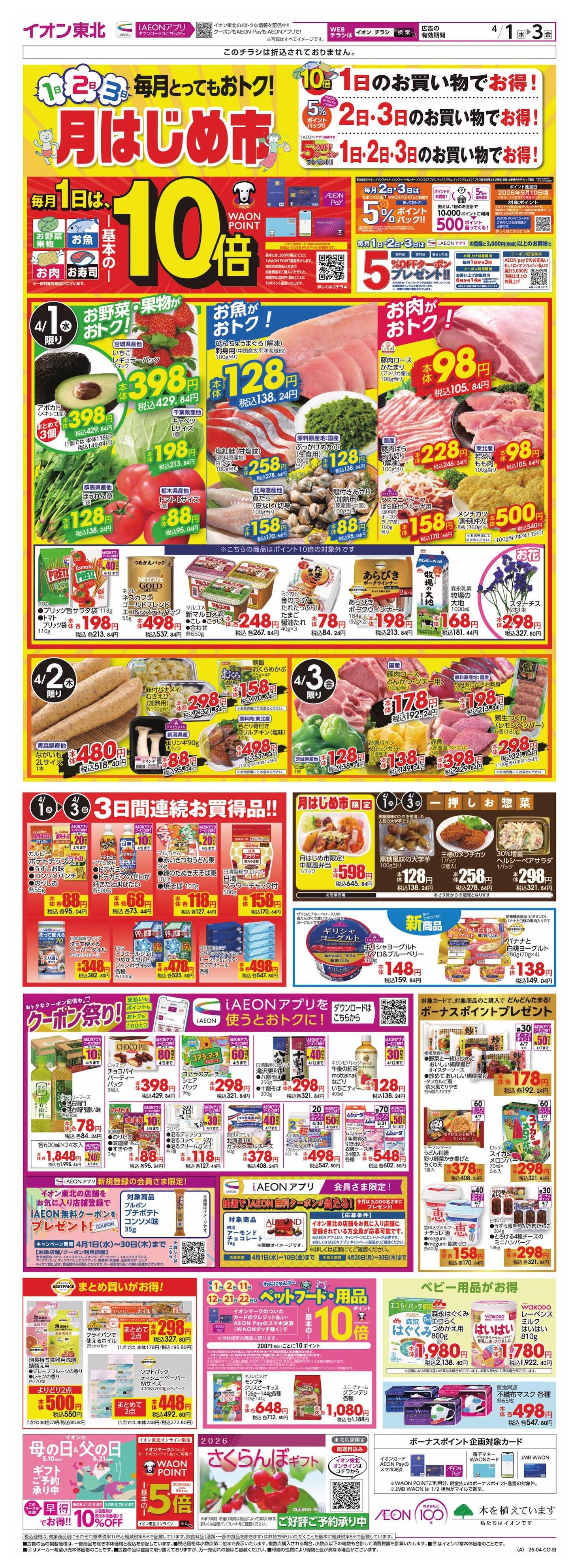 イオン米沢店今週のチラシ(2026年3月30日〜4月5日)