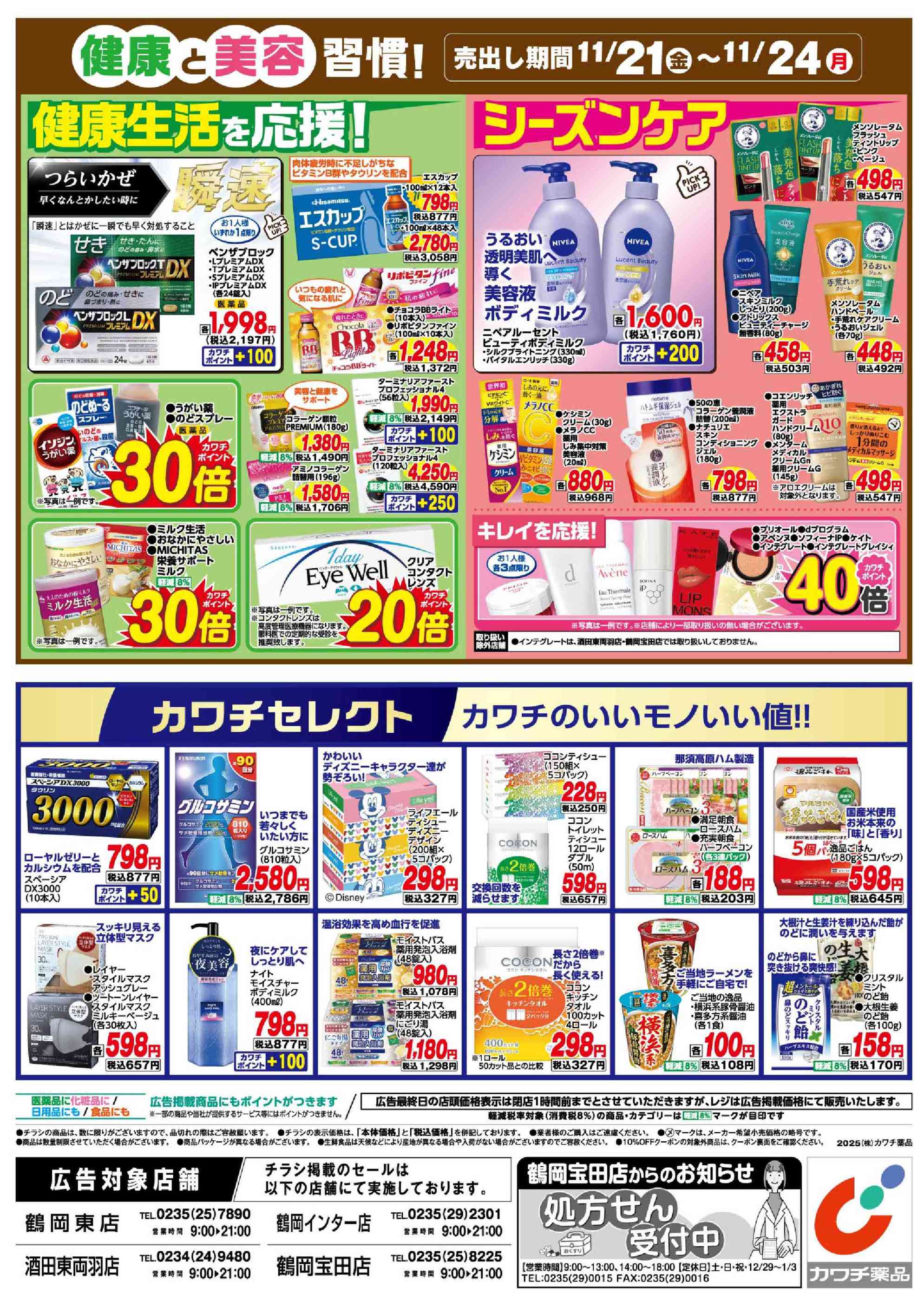 カワチ薬品酒田東両羽店今週のチラシ(2025年11月17日〜11月23日)
