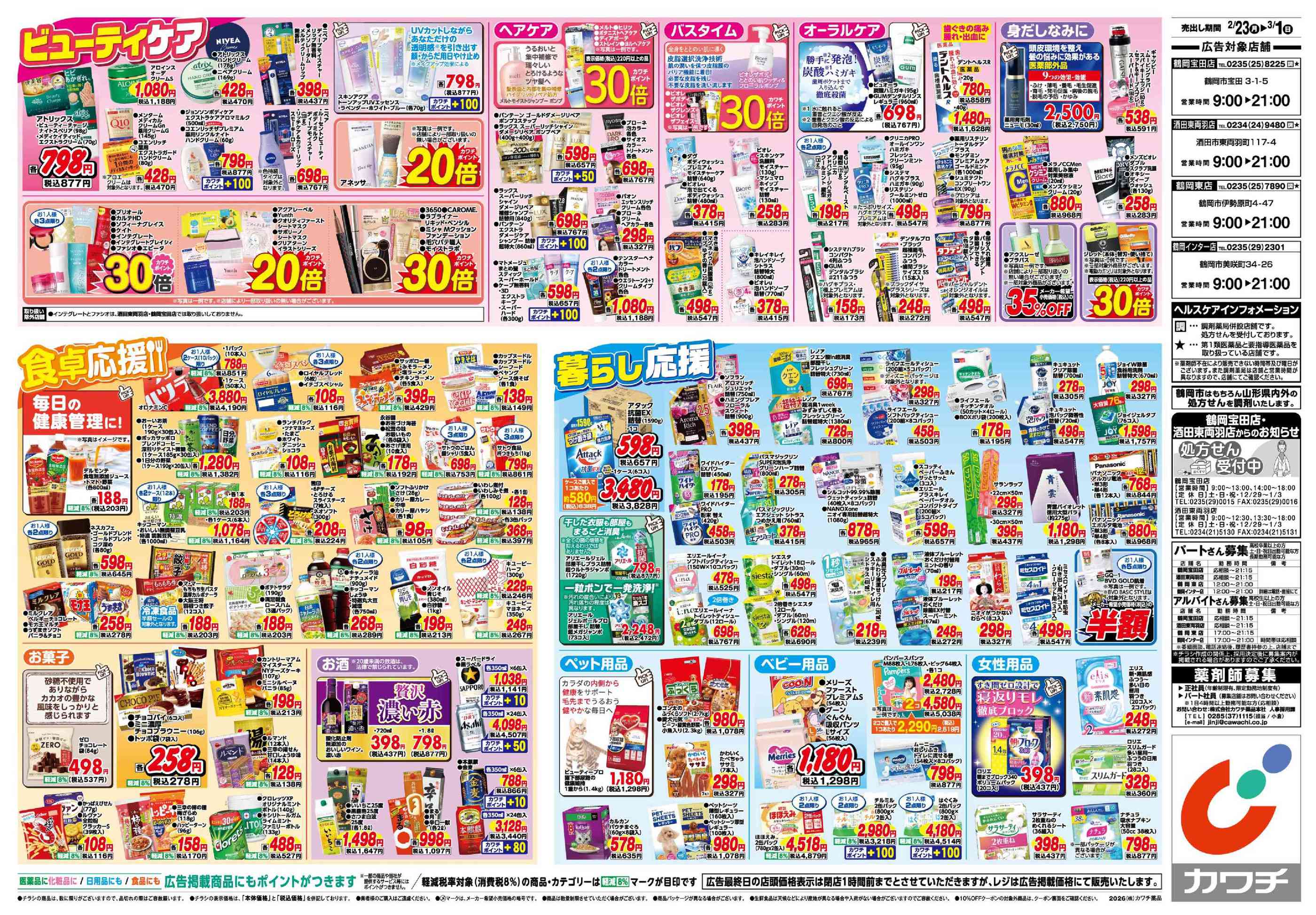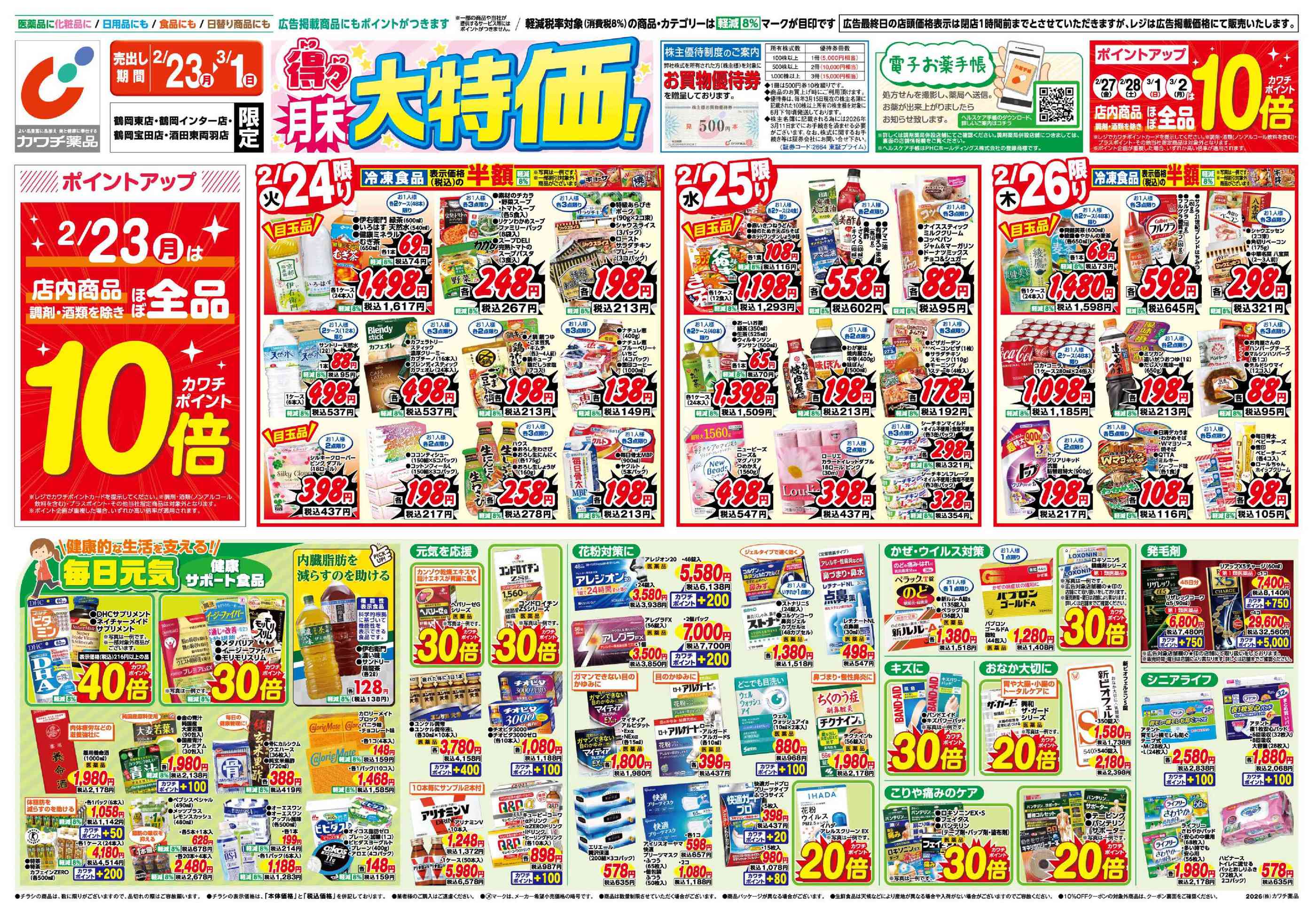 カワチ薬品酒田東両羽店今週のチラシ(2026年2月23日〜3月1日)