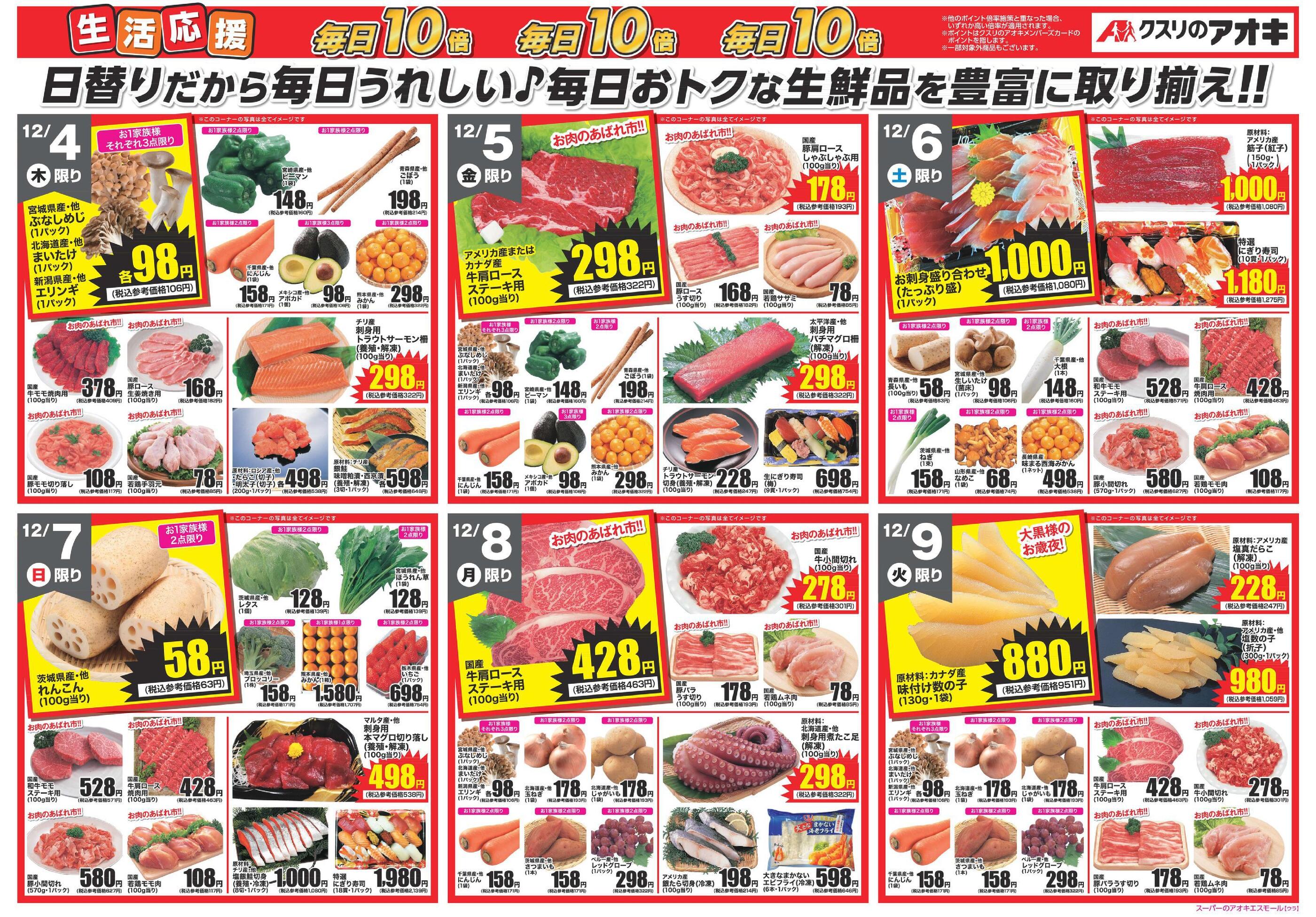 スーパーのアオキエスモール店今週のチラシ(2025年12月8日〜12月14日)