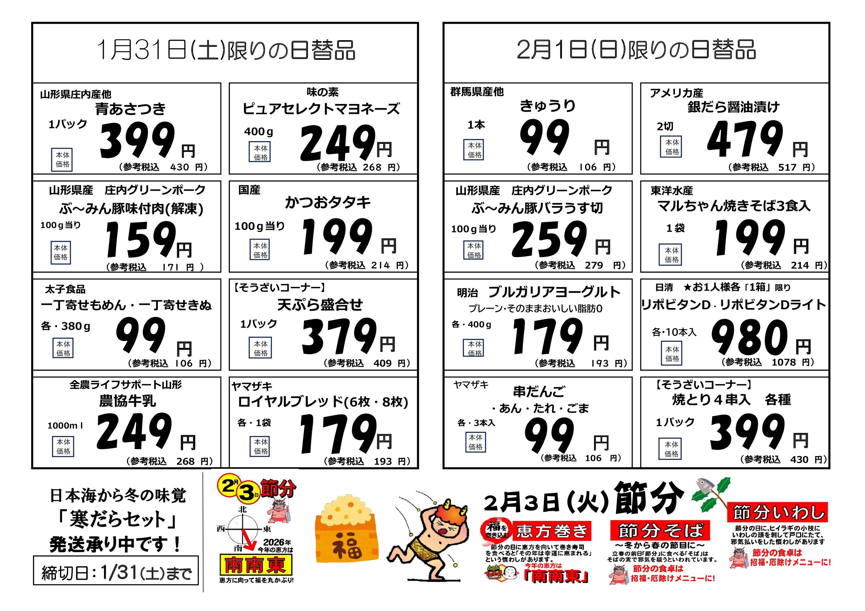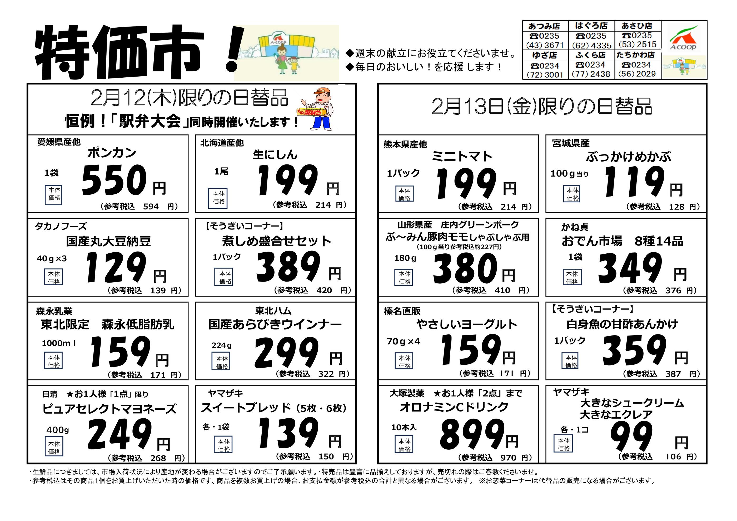 新鮮館 Aコープあつみ店今週のチラシ(2026年2月9日〜2月15日)