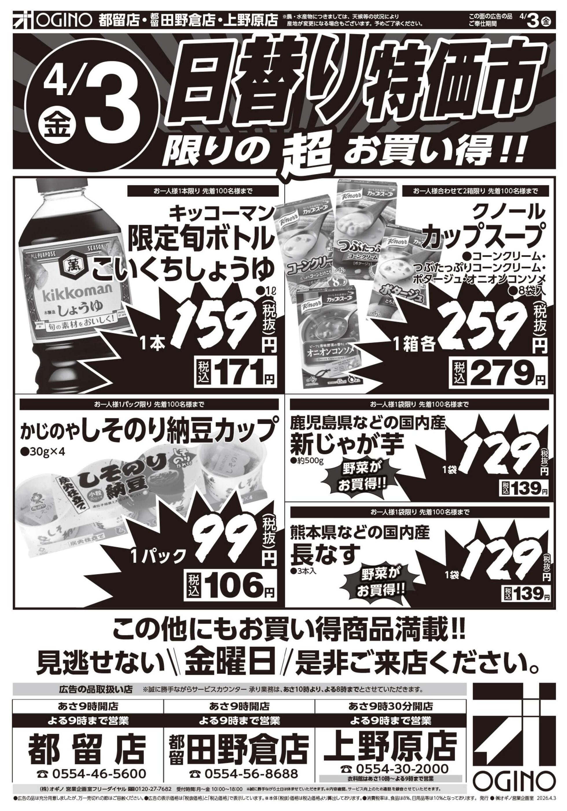 オギノ上野原店今週のチラシ(2026年3月30日〜4月5日)