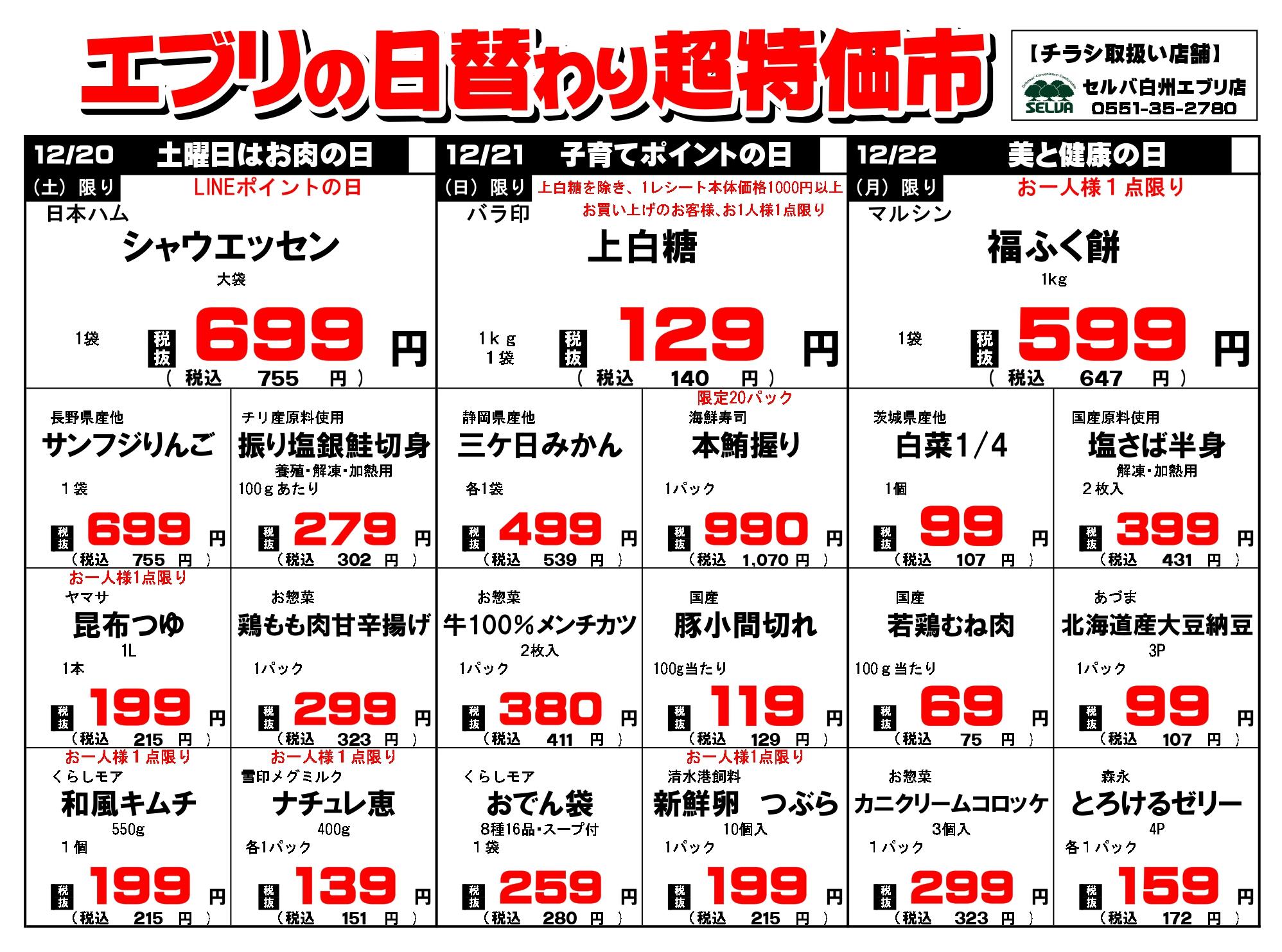 セルバ白州エブリ店今週のチラシ(2026年1月5日〜1月11日)