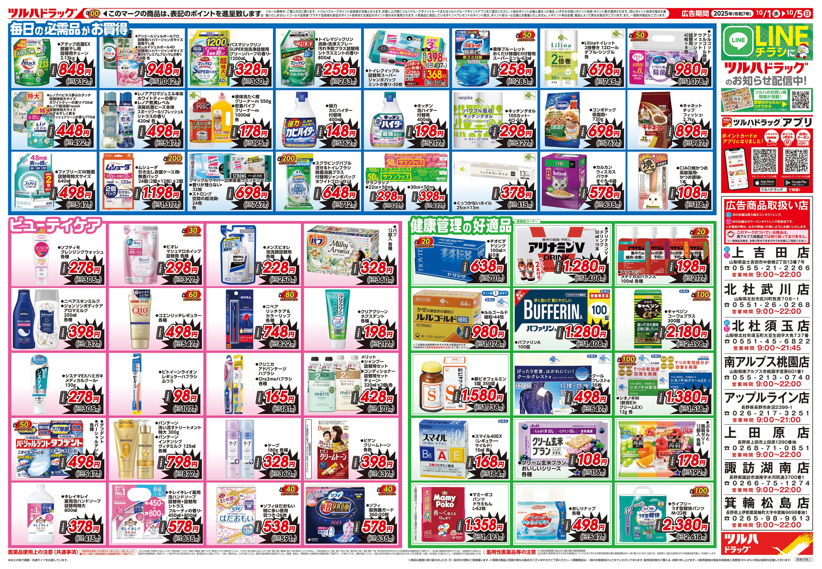 ツルハドラッグ北杜武川店今週のチラシ(2025年9月29日〜10月5日)