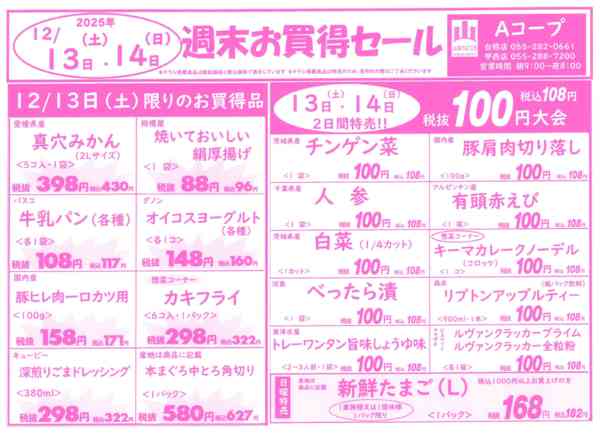 ※「店舗の掲載内容について」チラシガイドに掲載している情報は、独自に調査した内容及びユーザーから頂いた情報を掲載しています。お気づきの点がございましたら「お問い合わせ」よりご連絡ください。また店舗の営業状況、商品に関するお問い合わせは直接店舗事業者にご確認ください。