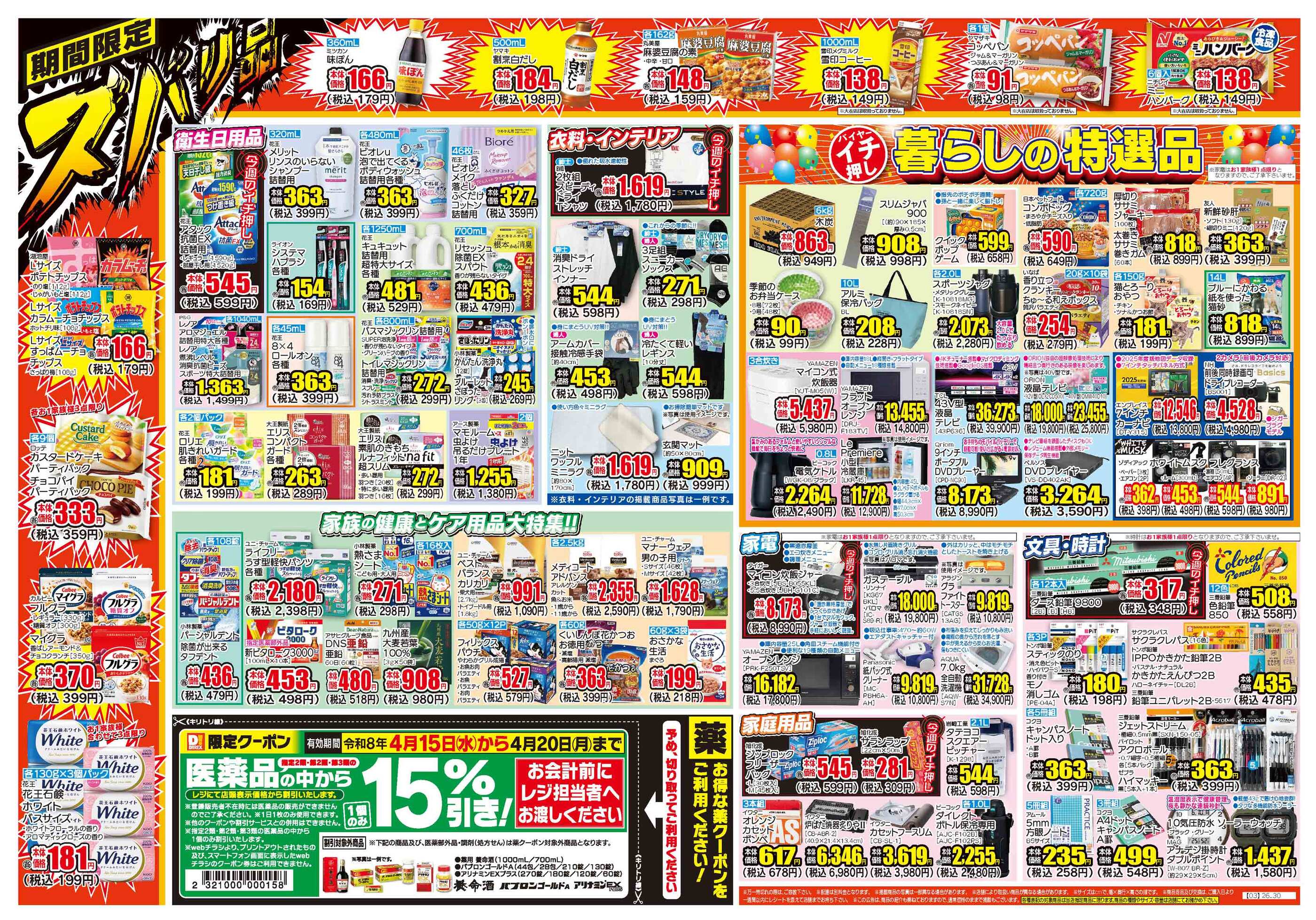 ダイレックス湯村店今週のチラシ(2026年4月13日〜4月19日)