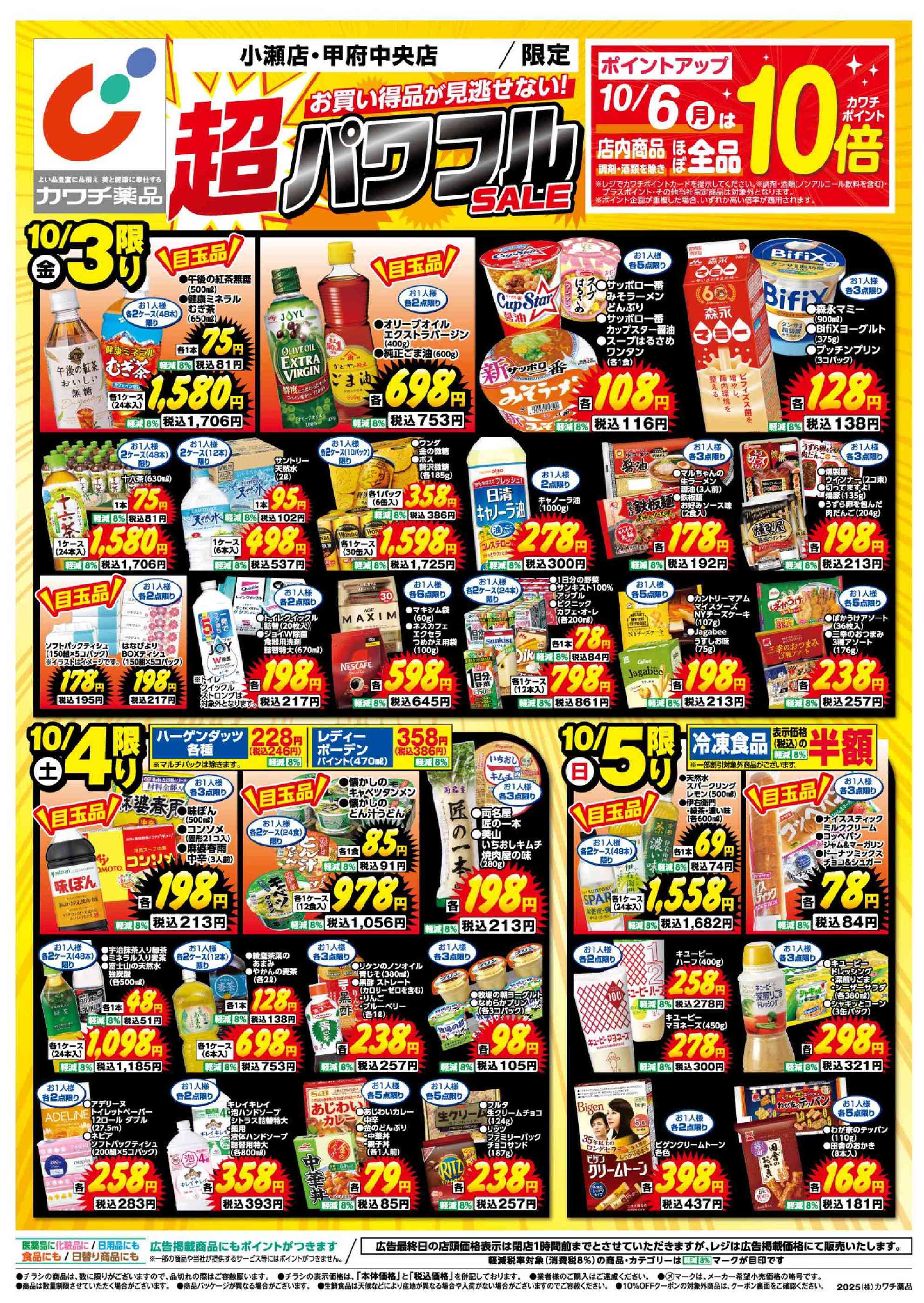 カワチ薬品小瀬店今週のチラシ(2025年9月29日〜10月5日)