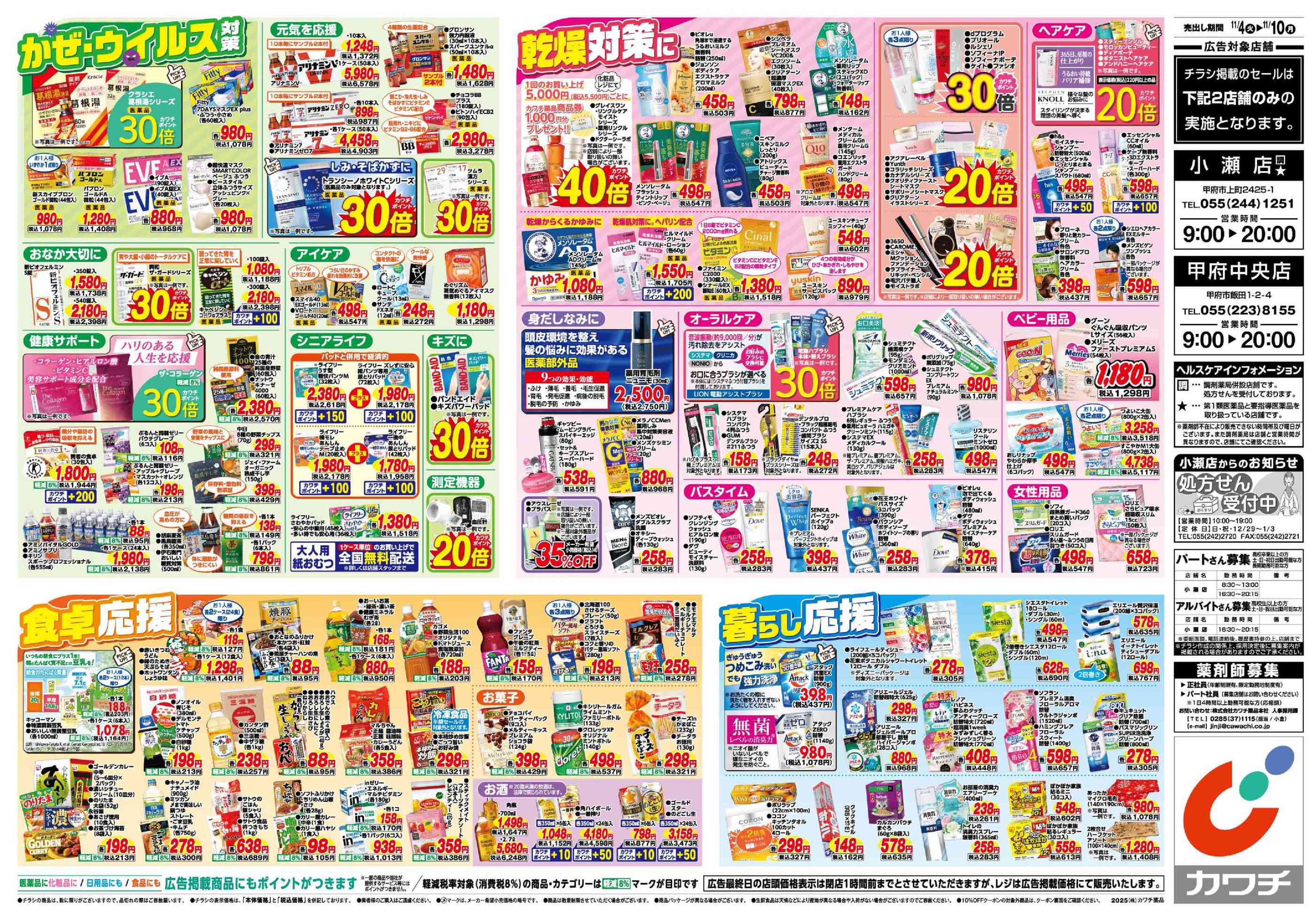 カワチ薬品甲府中央店今週のチラシ(2025年11月3日〜11月9日)