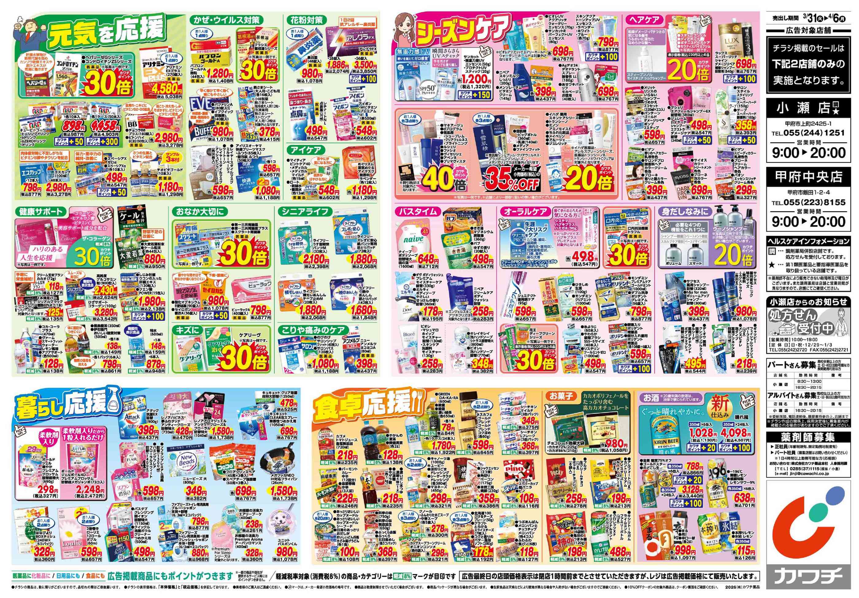 カワチ薬品甲府中央店今週のチラシ(2026年3月30日〜4月5日)