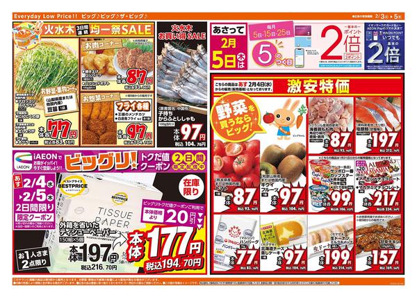 特売やセール情報など最新のチラシを掲載中。(2種類、3枚のチラシを掲載しています)