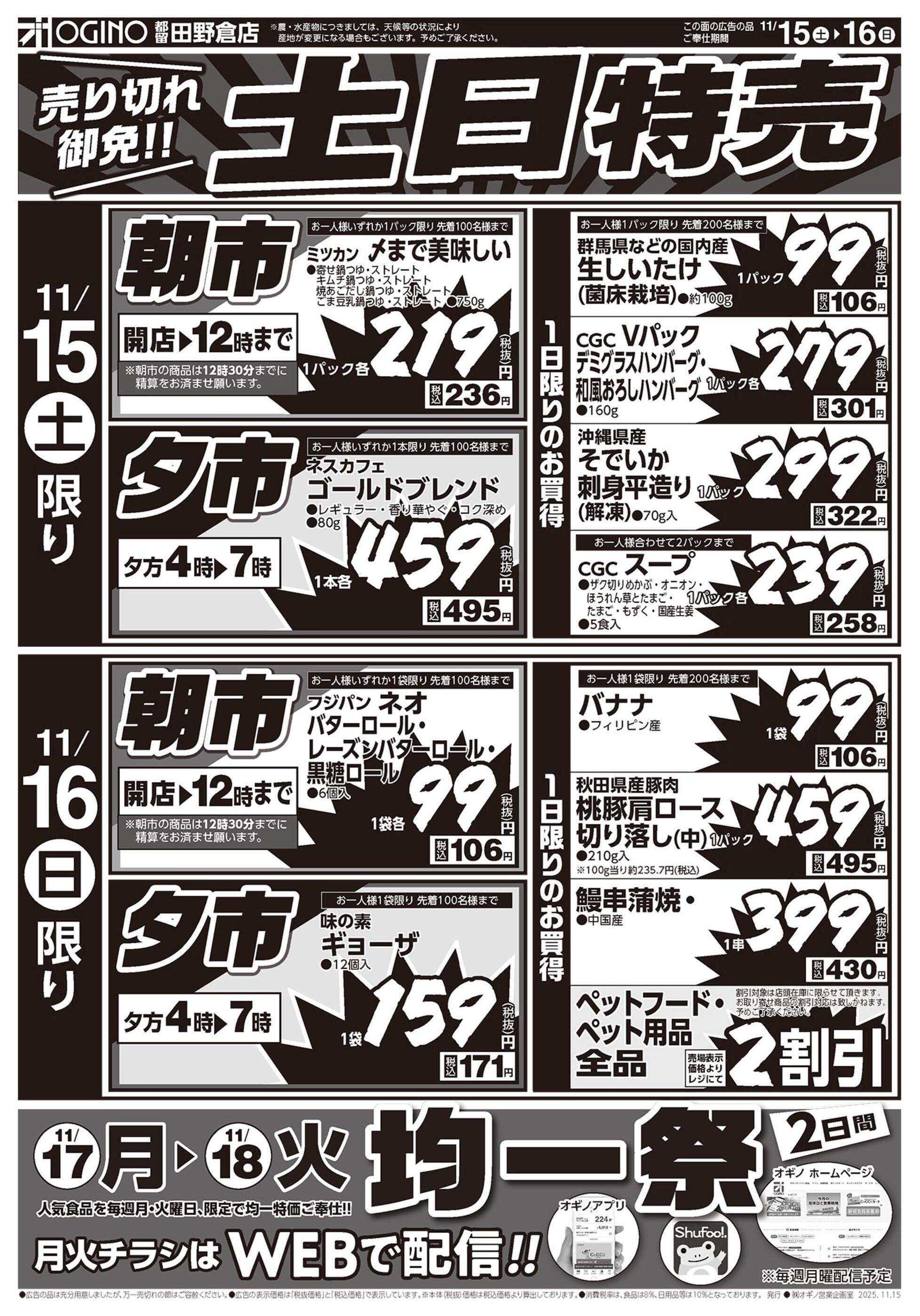 オギノ田野倉店今週のチラシ(2025年11月10日〜11月16日)