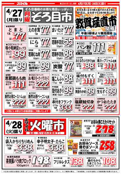特売やセール情報など最新のチラシを掲載中。(2種類、4枚のチラシを掲載しています)