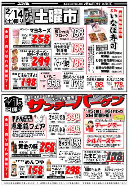 ※「店舗の掲載内容について」チラシガイドに掲載している情報は、独自に調査した内容及びユーザーから頂いた情報を掲載しています。お気づきの点がございましたら「お問い合わせ」よりご連絡ください。また店舗の営業状況、商品に関するお問い合わせは直接店舗事業者にご確認ください。