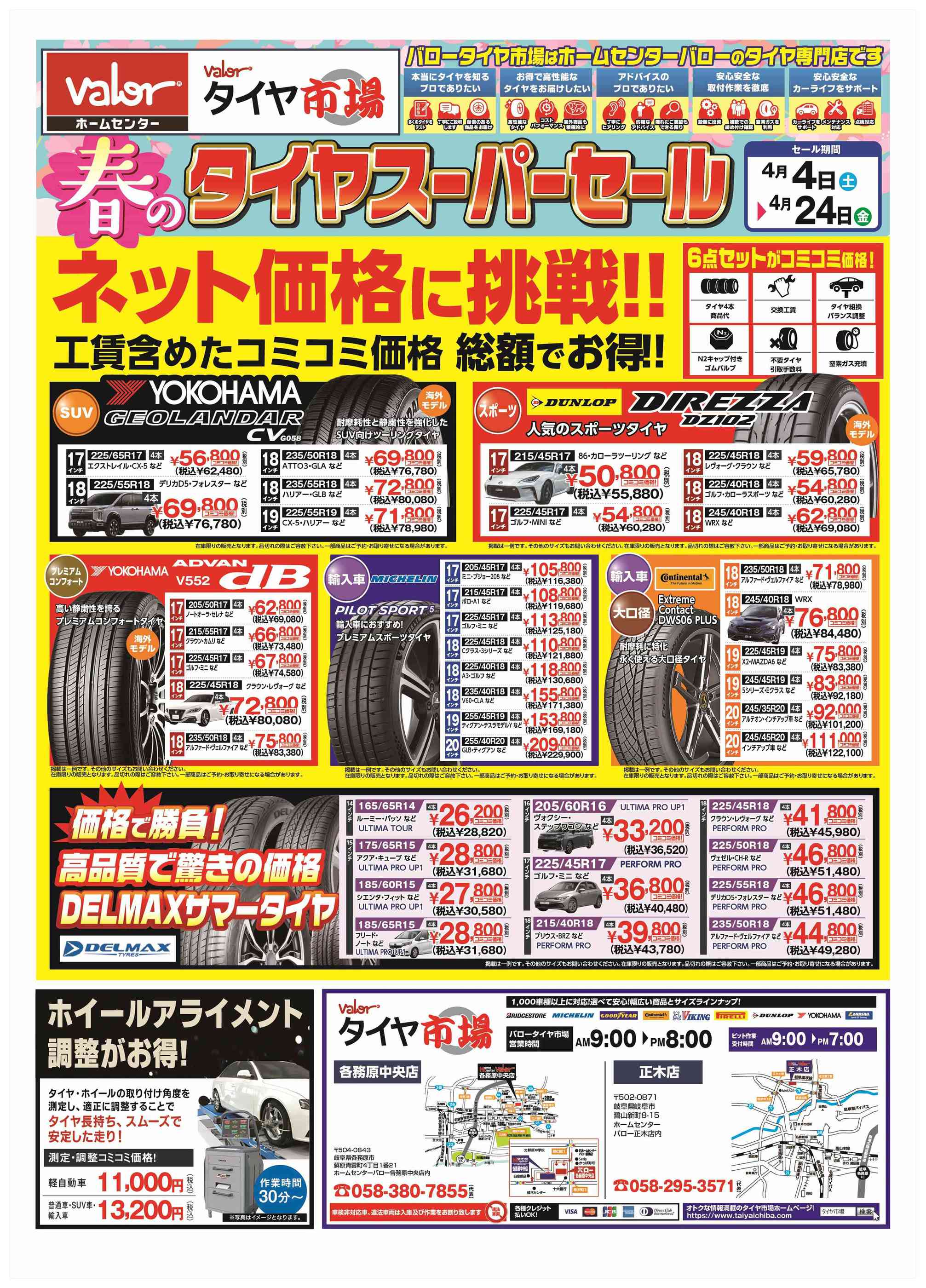 - 2026年4月4〜24日までHCバロータイヤ市場チラシ (2枚)