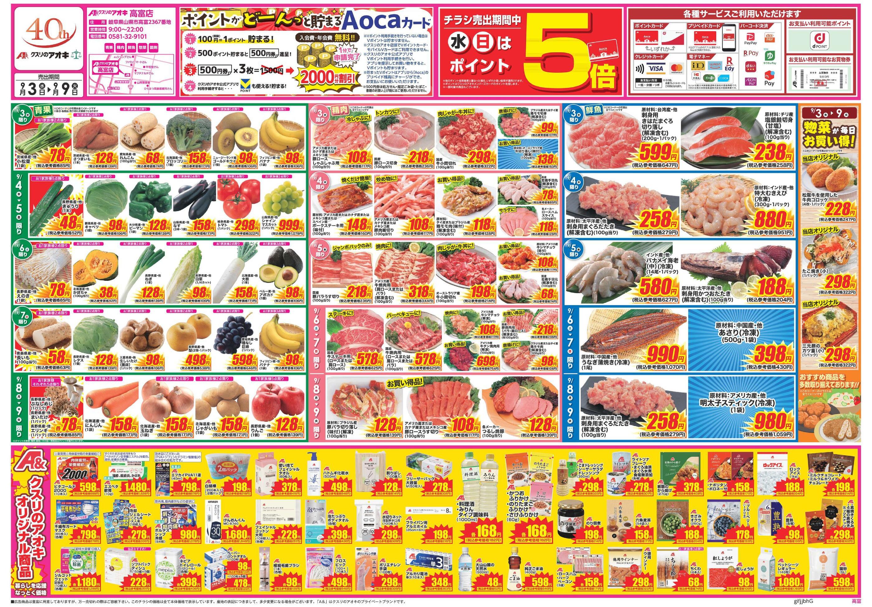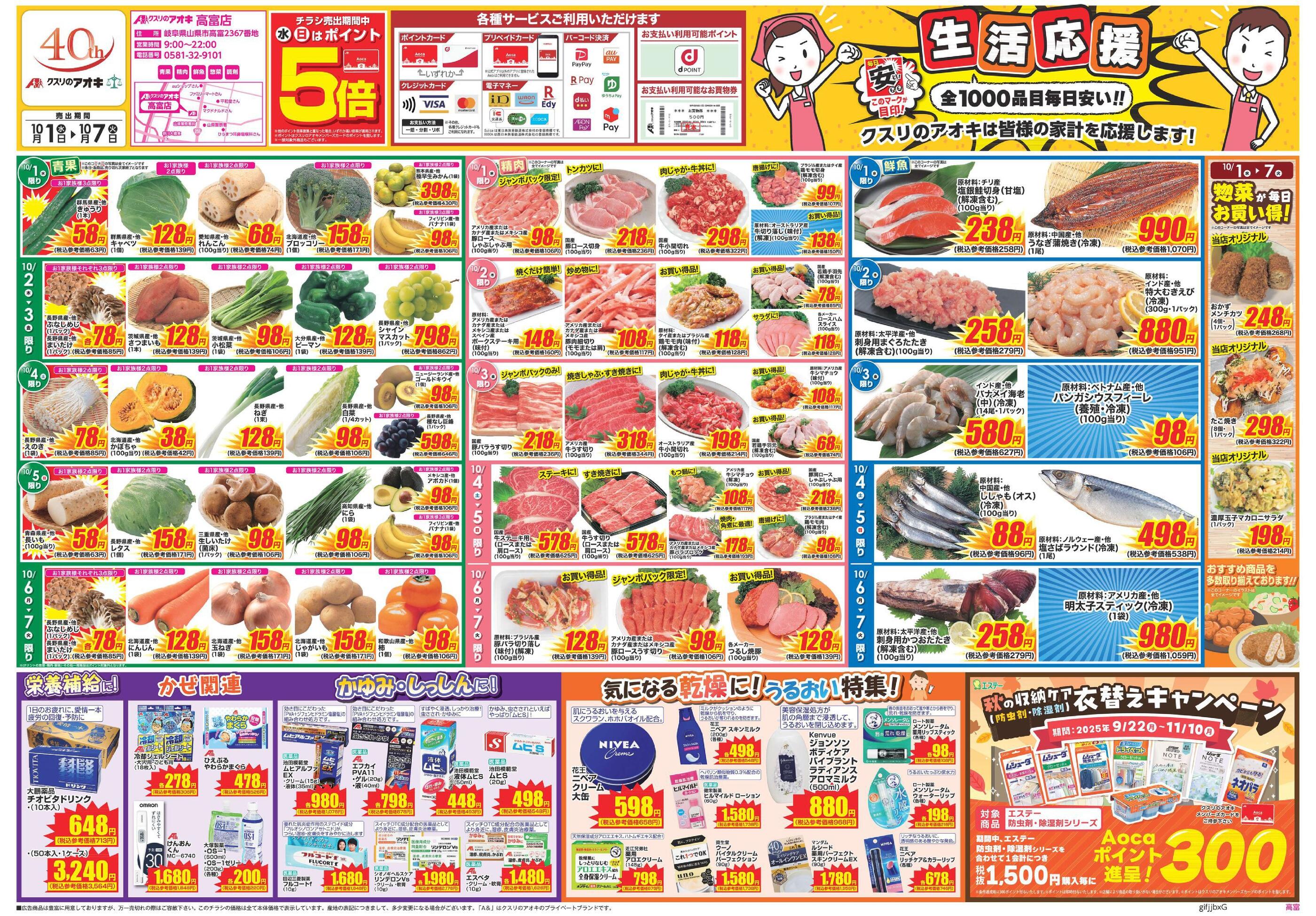 クスリのアオキ高富店今週のチラシ(2025年9月29日〜10月5日)