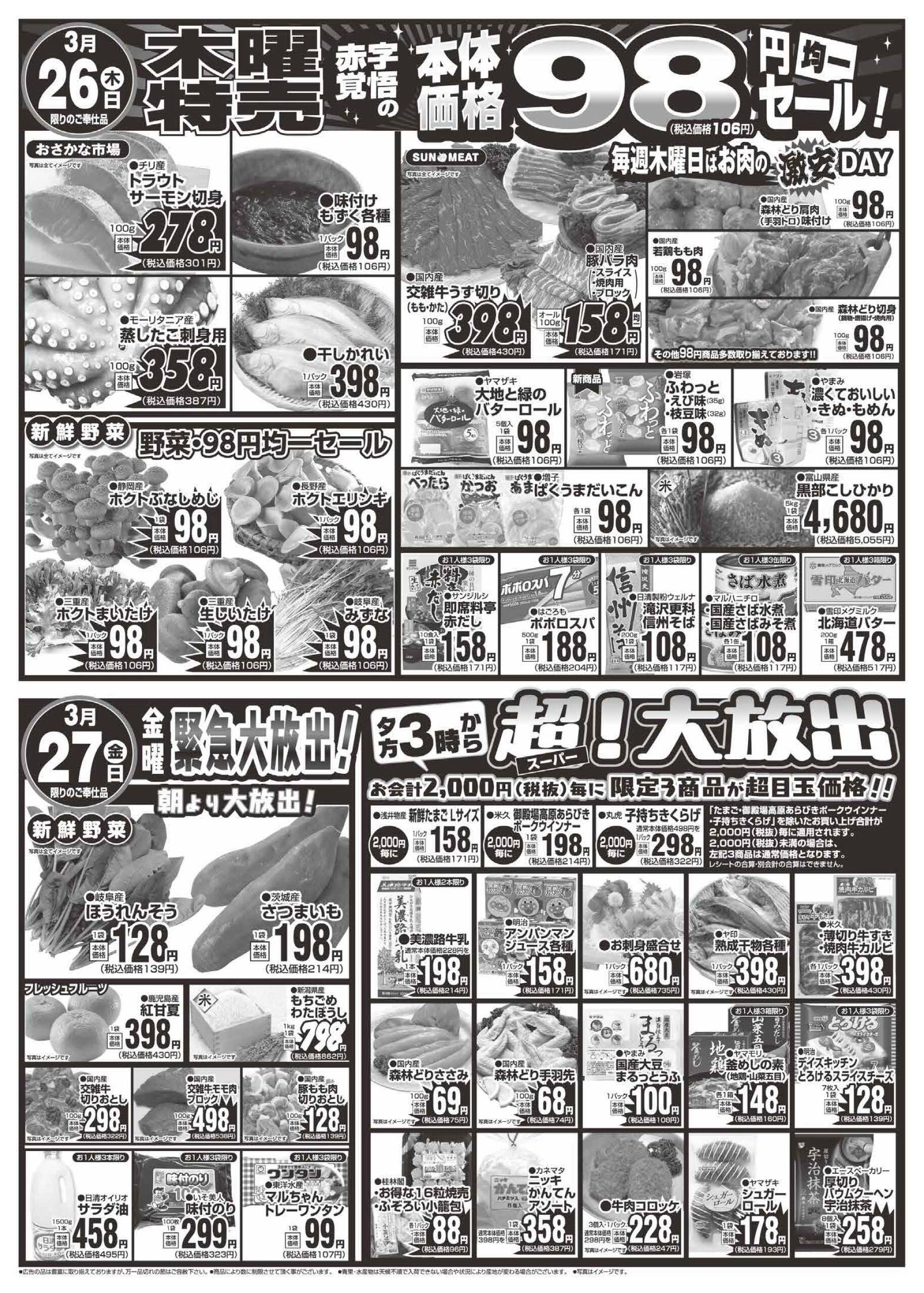 特売やセール情報など最新のチラシを掲載中。(1種類、2枚のチラシを掲載しています)