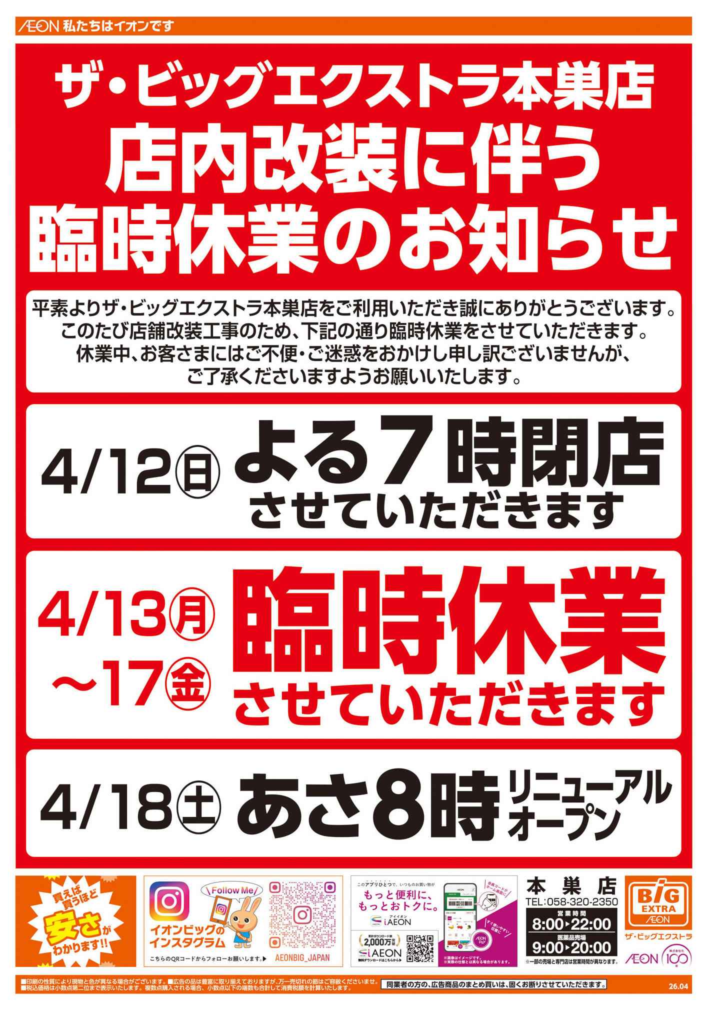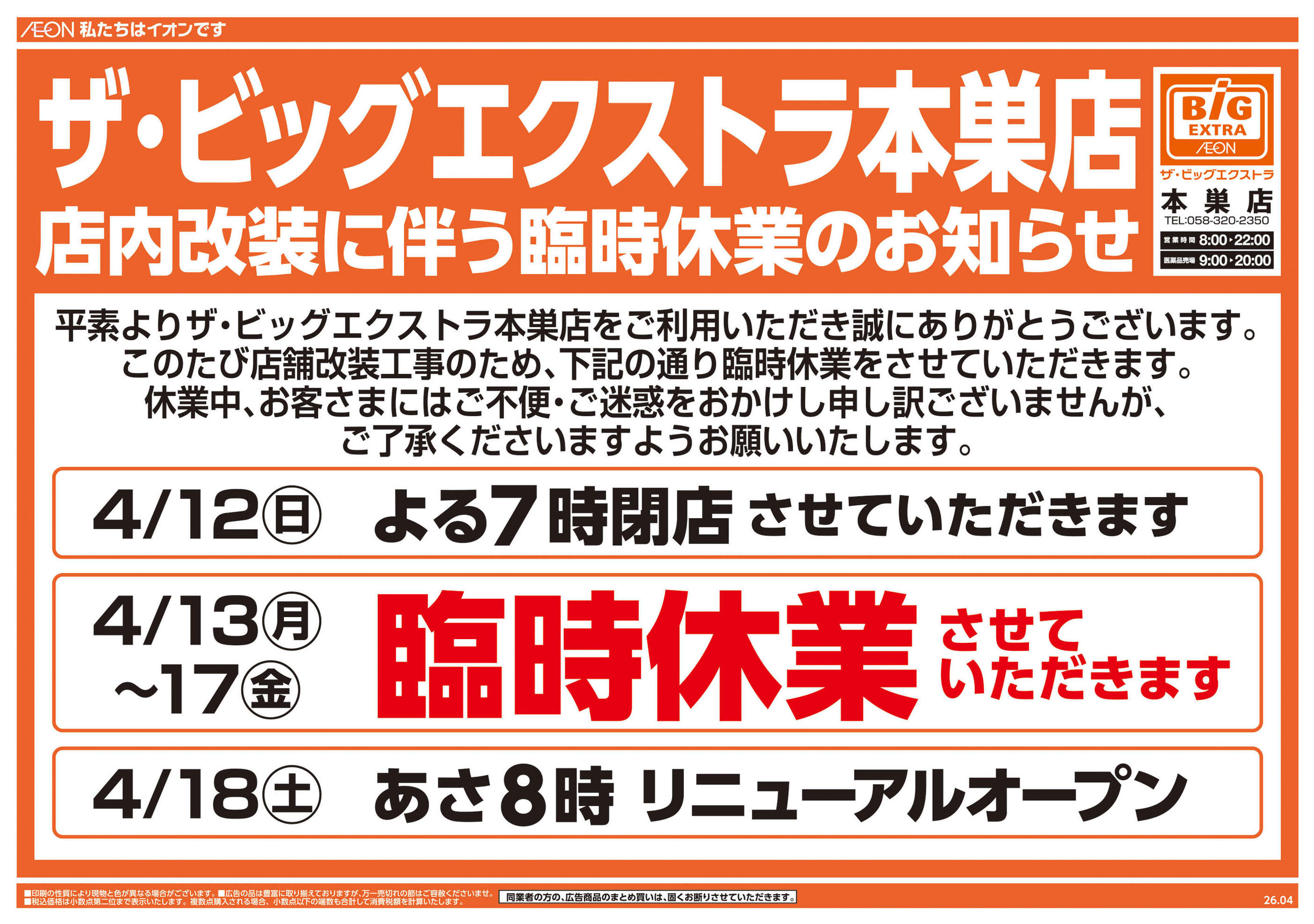 ザ・ビッグエクストラ本巣店今週のチラシ(2026年4月13日〜4月19日)