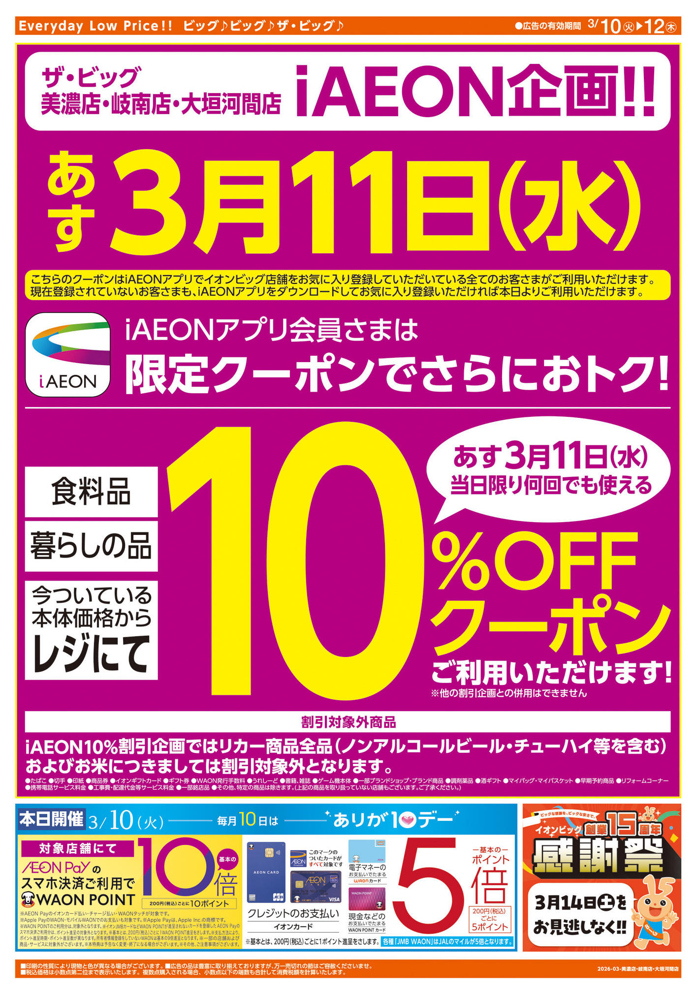 ザ・ビッグ美濃店今週のチラシ(2026年3月9日〜3月15日)