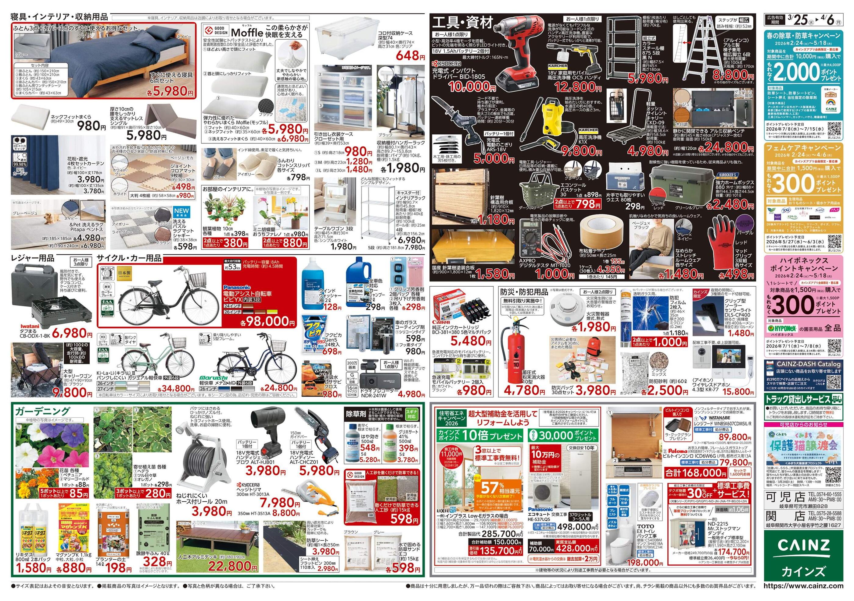 カインズ関店今週のチラシ(2026年3月30日〜4月5日)