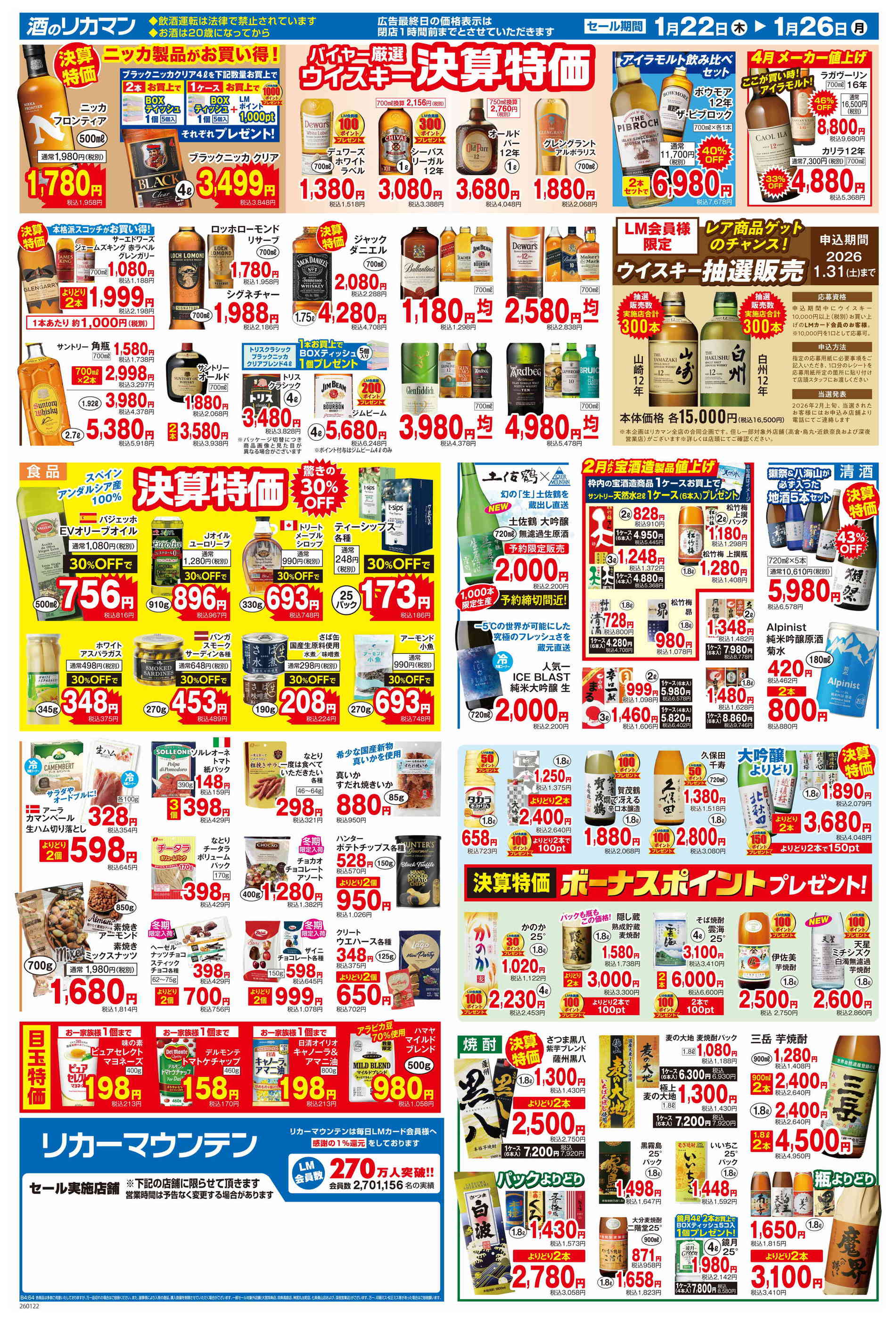 リカーマウンテン関店今週のチラシ(2026年1月19日〜1月25日)