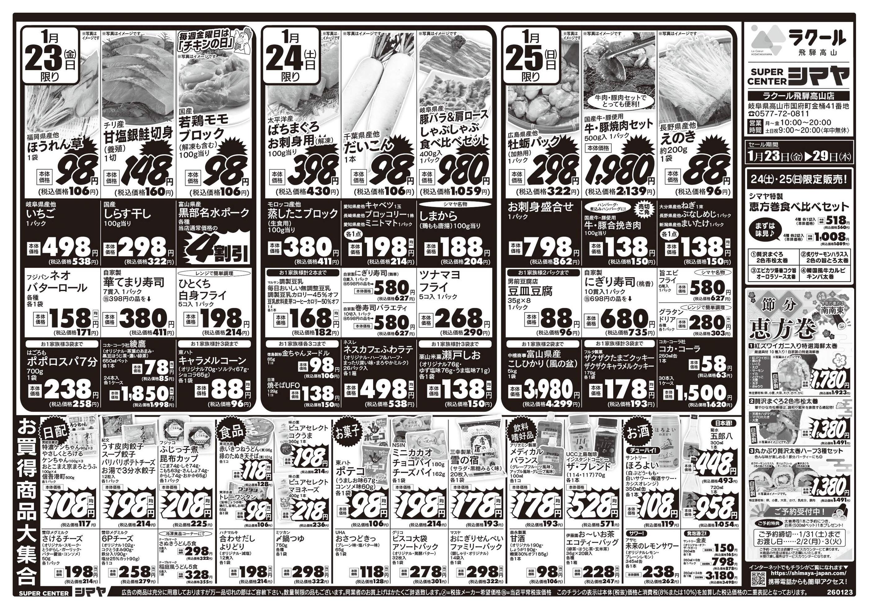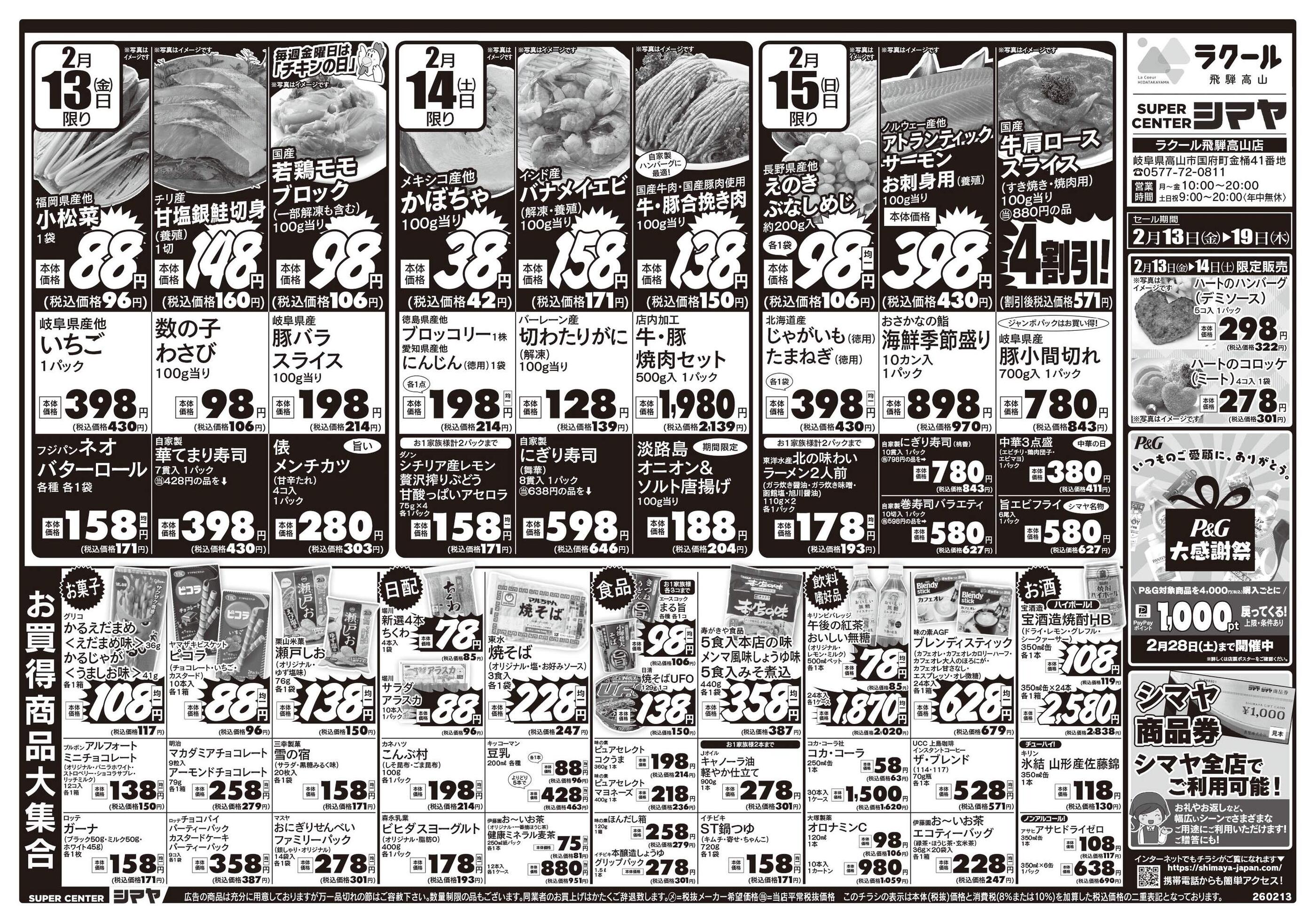 スーパーセンターシマヤラクール飛騨高山店今週のチラシ(2026年2月16日〜2月22日)