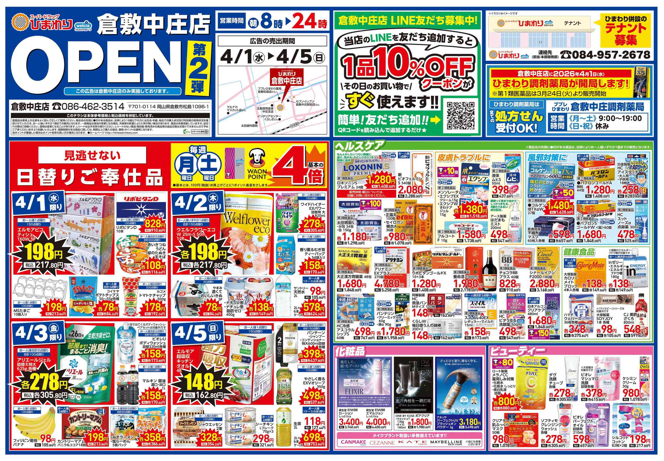 スーパードラッグひまわり倉敷中庄店今週のチラシ(2026年3月30日〜4月5日)