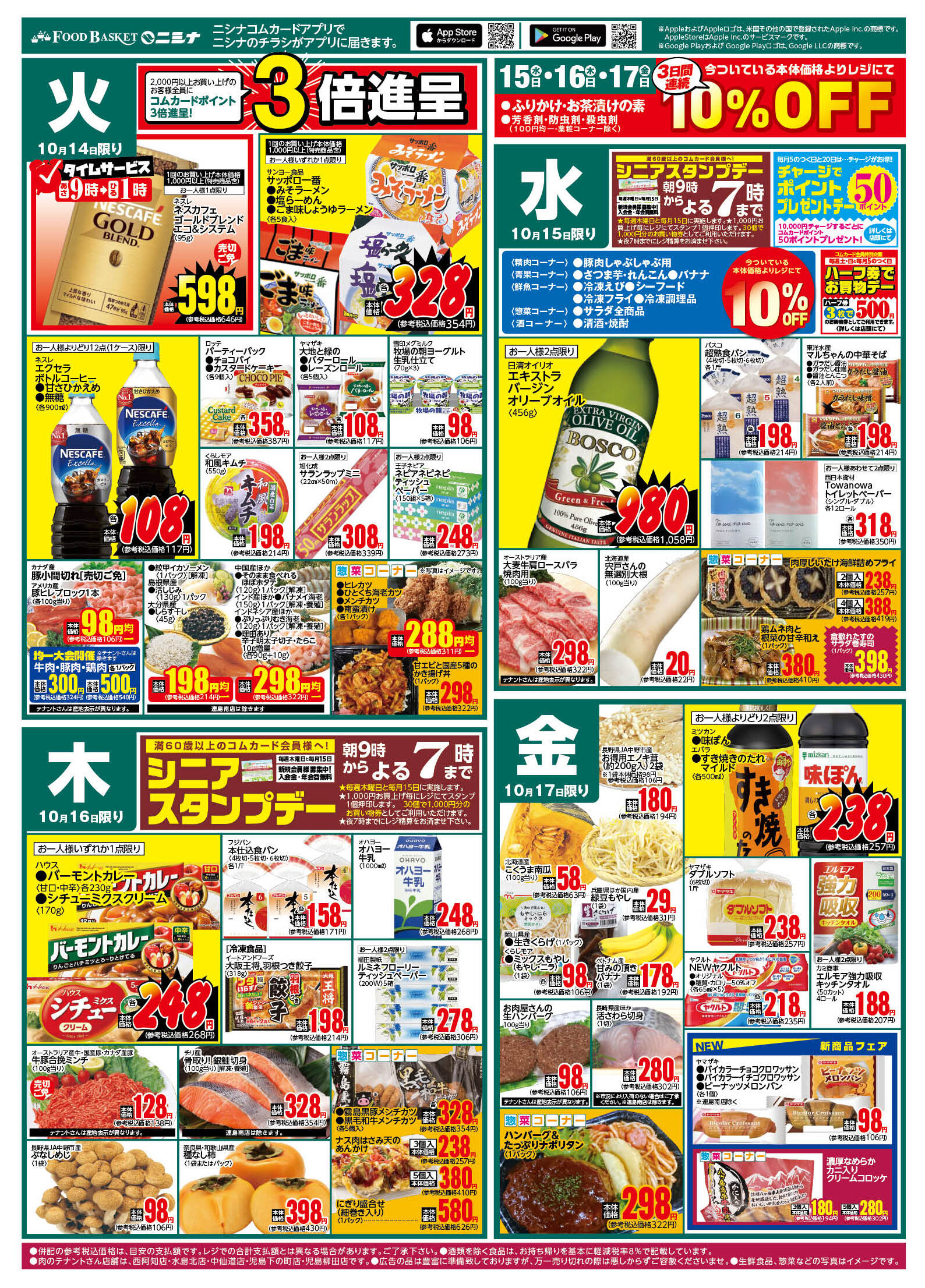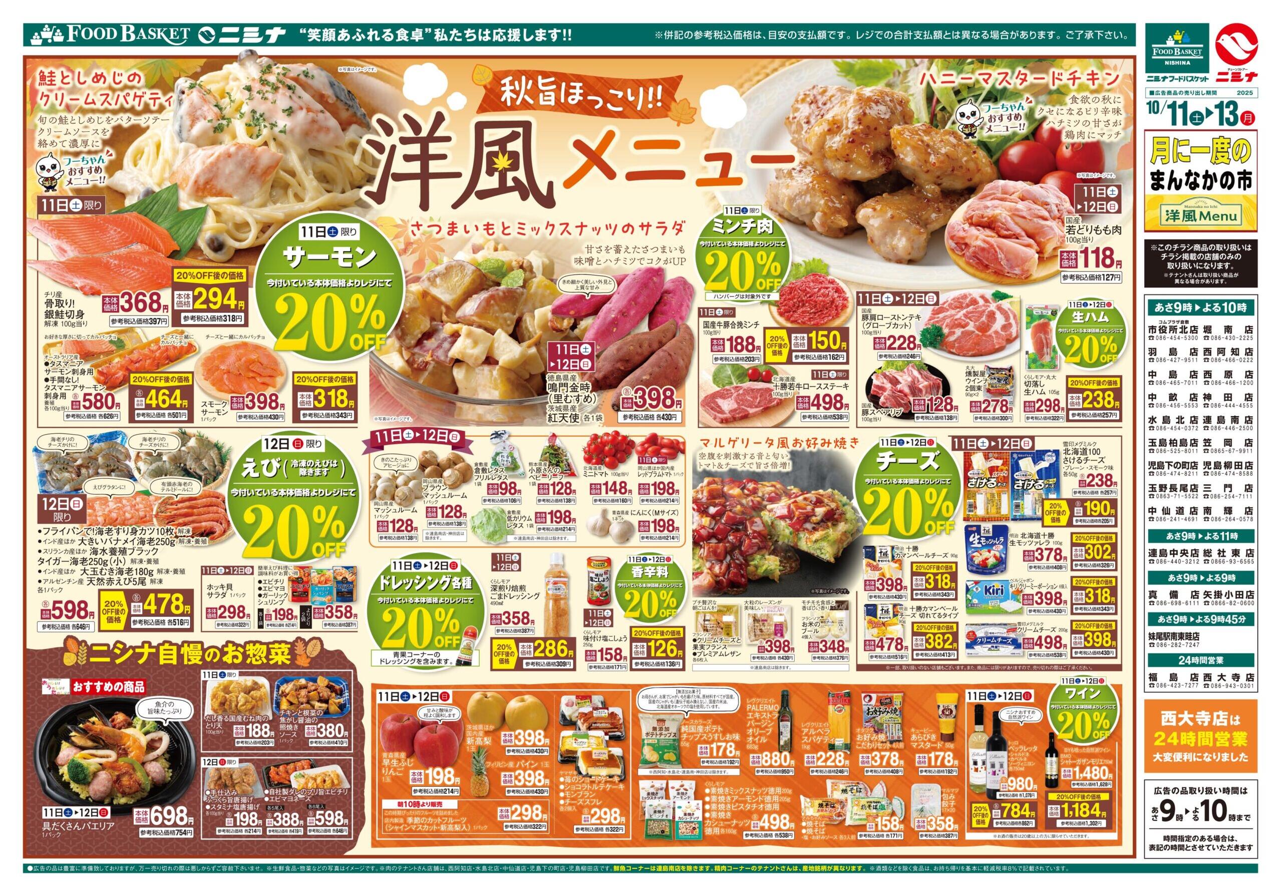 ニシナフードバスケット矢掛小田店今週のチラシ(2025年10月13日〜10月19日)