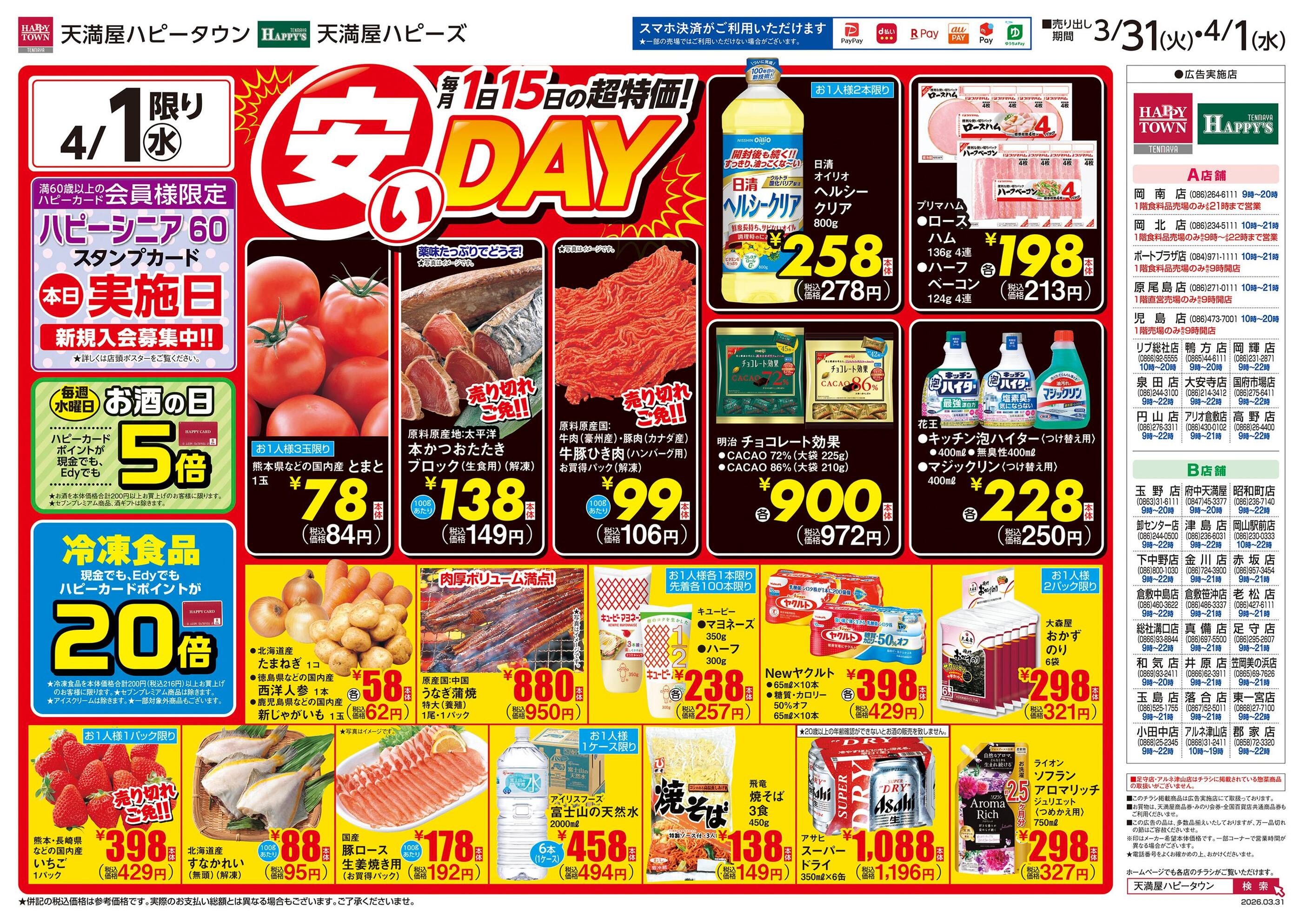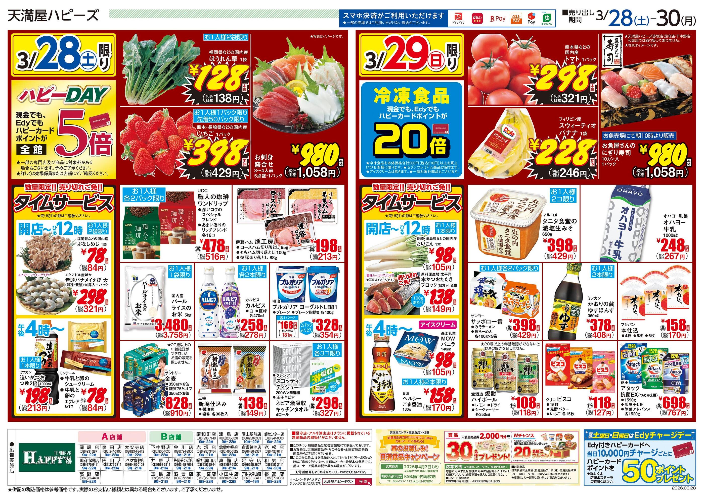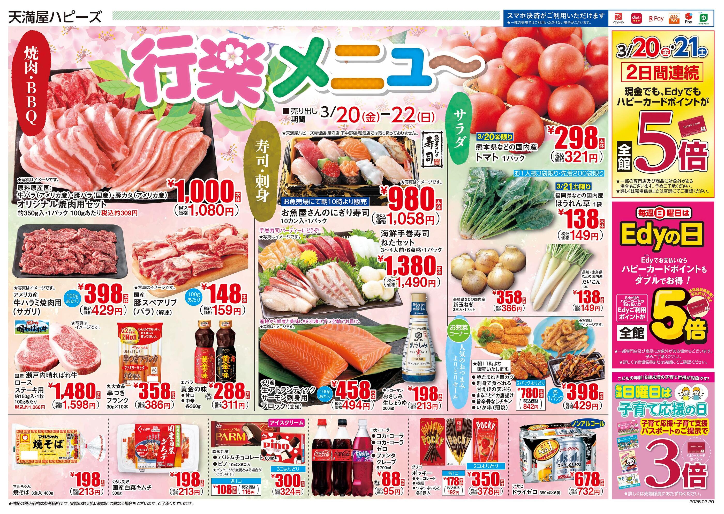 天満屋ハピーズ下中野店今週のチラシ(2026年3月30日〜4月5日)