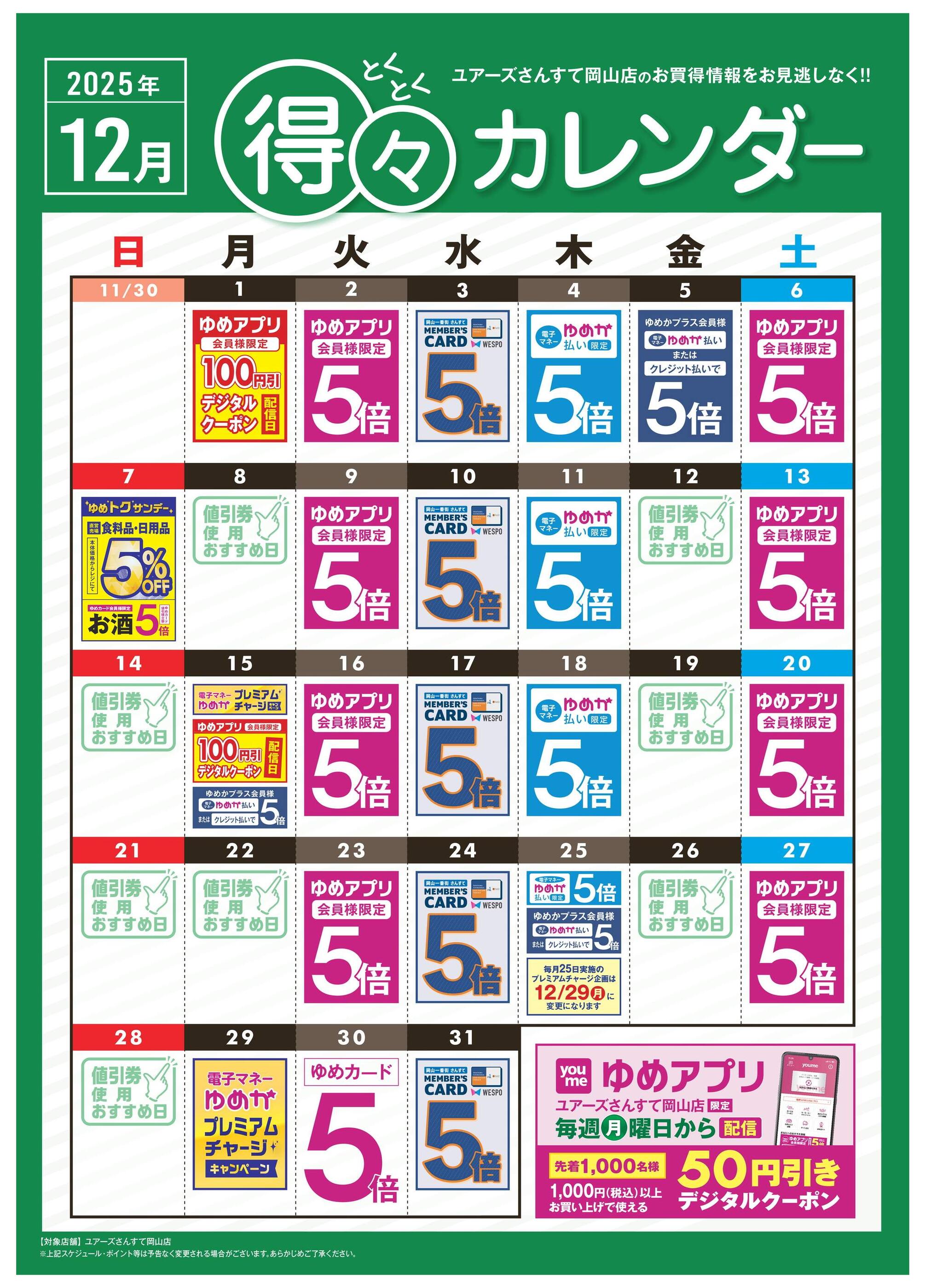 ユアーズさんすて岡山店今週のチラシ(2025年12月29日〜1月4日)
