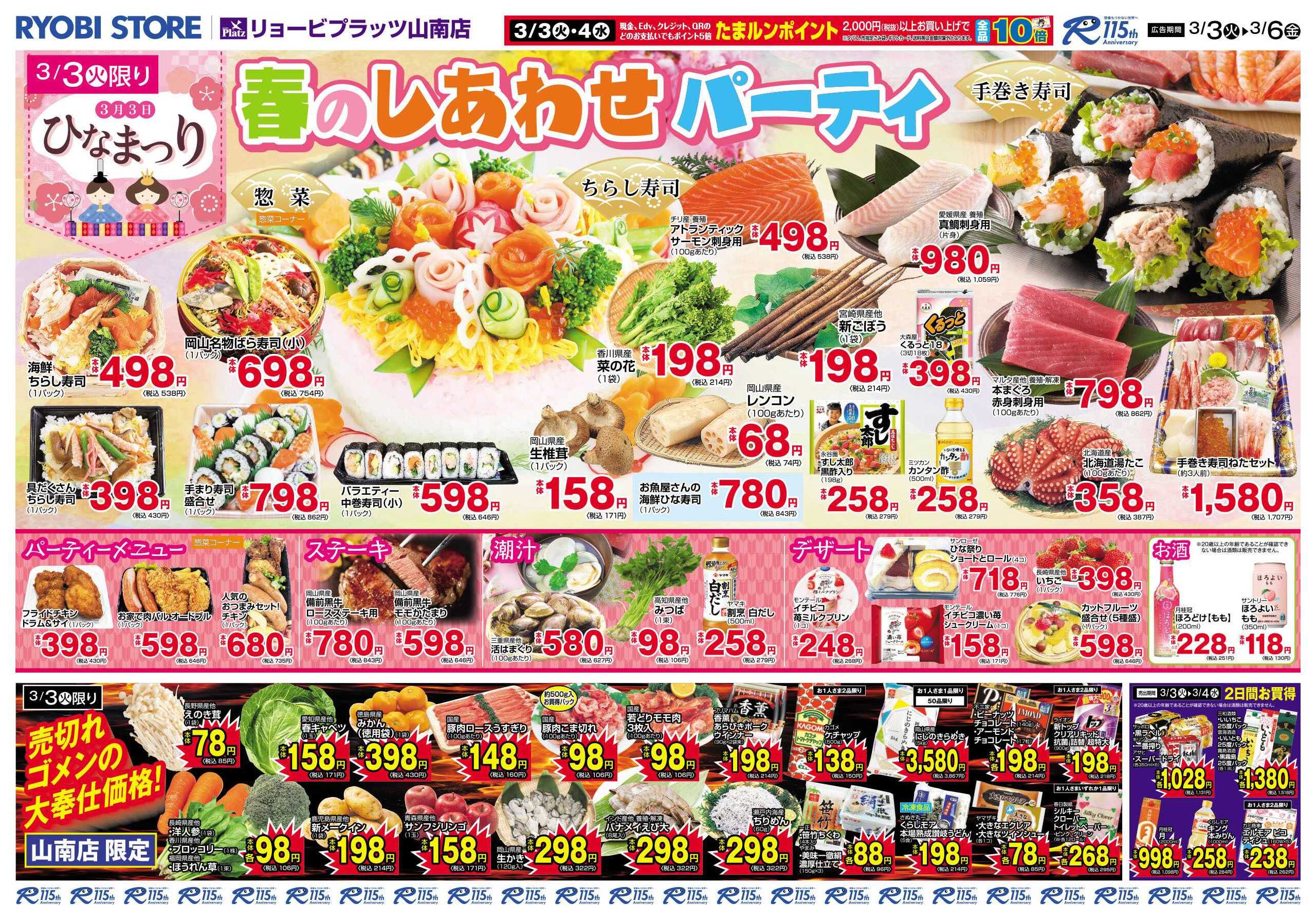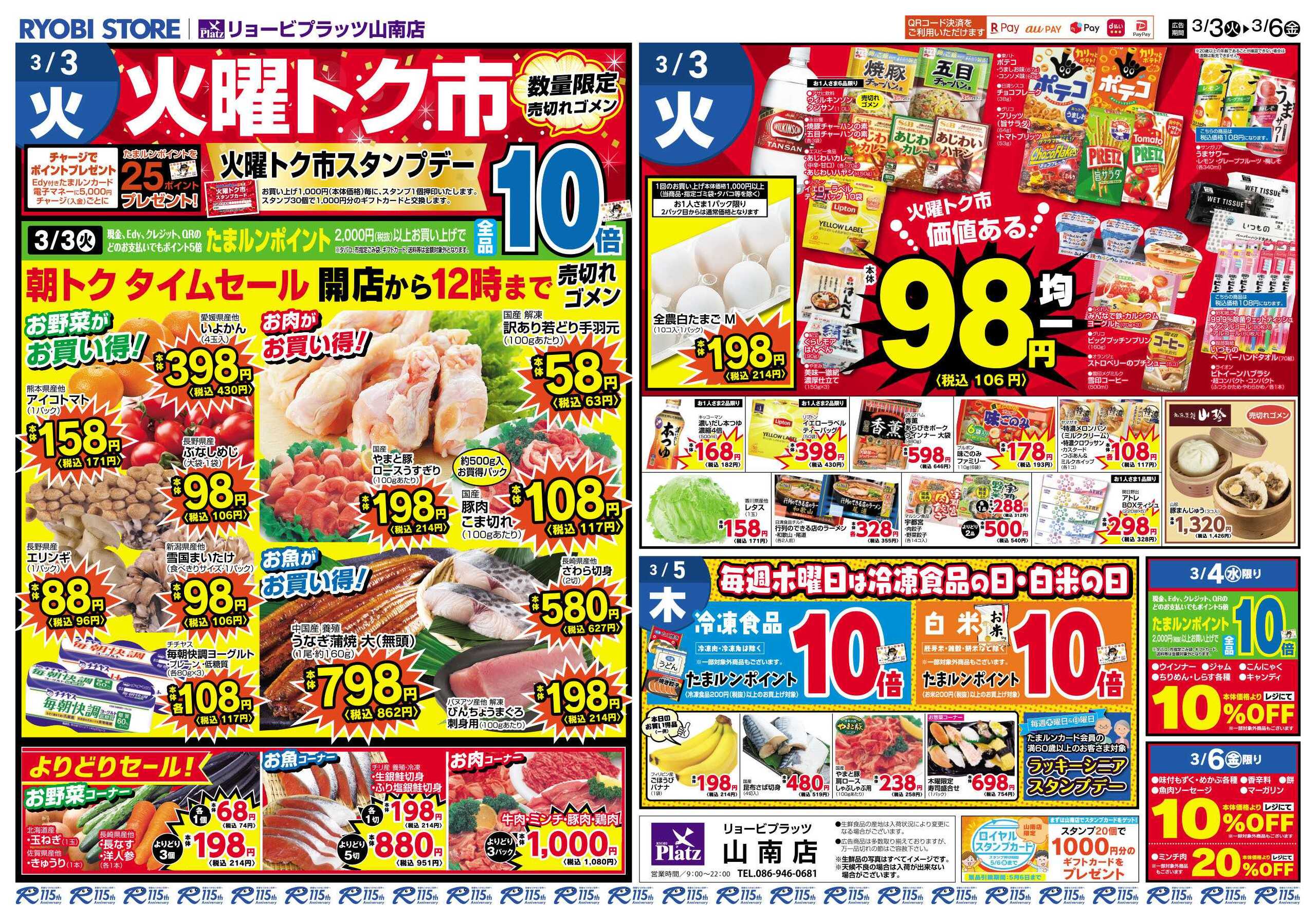 リョービプラッツ山南店今週のチラシ(2026年3月16日〜3月22日)