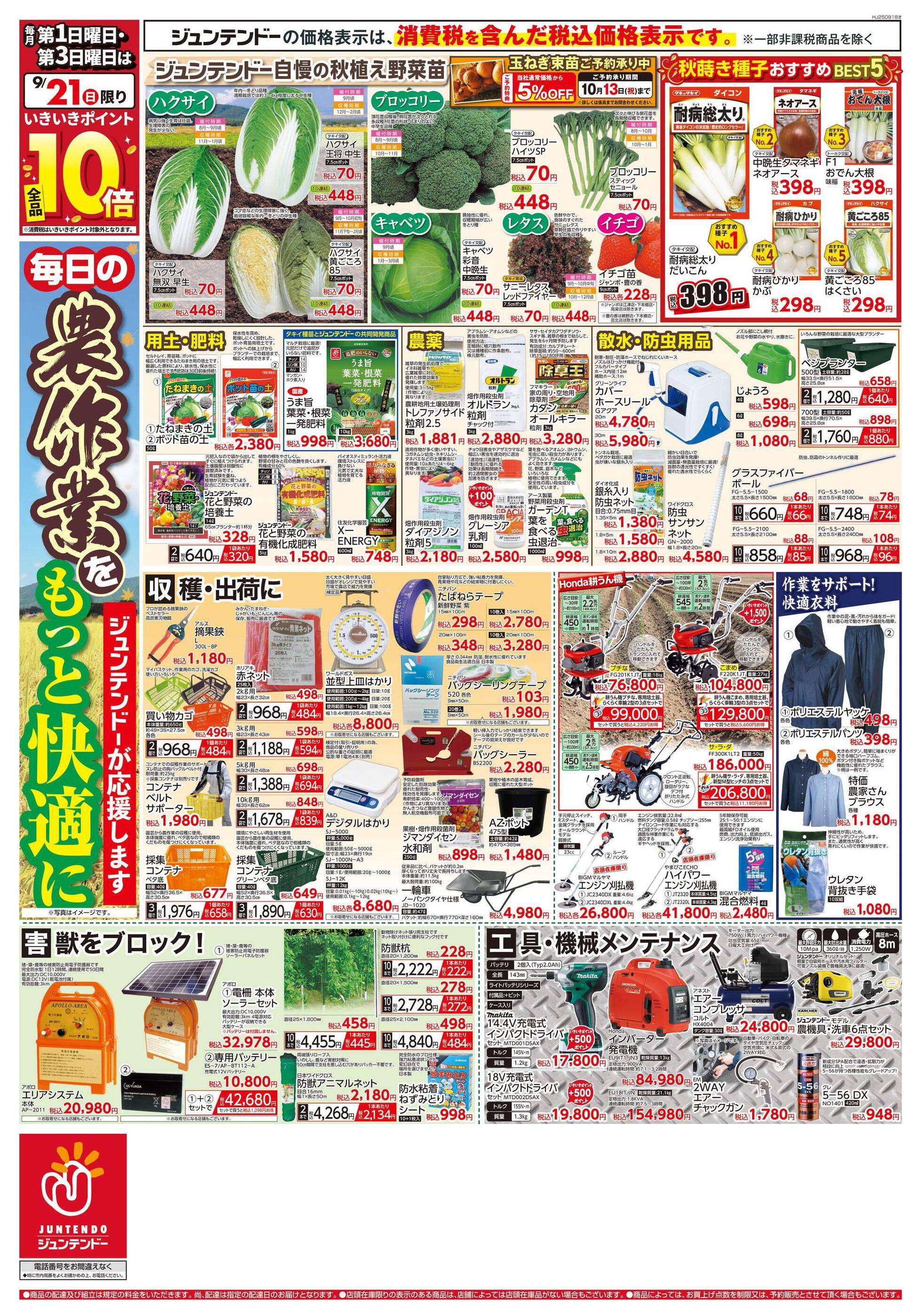 ジュンテンドー津山店今週のチラシ(2025年9月29日〜10月5日)