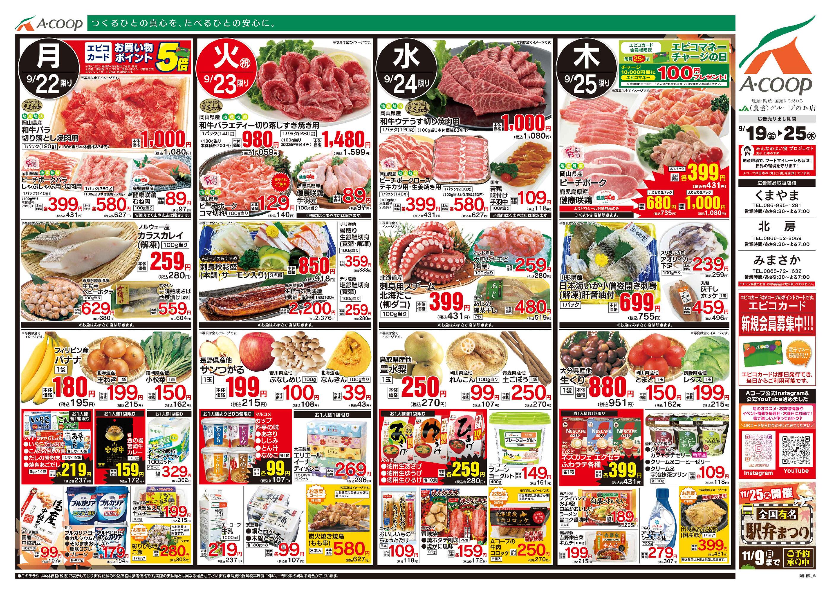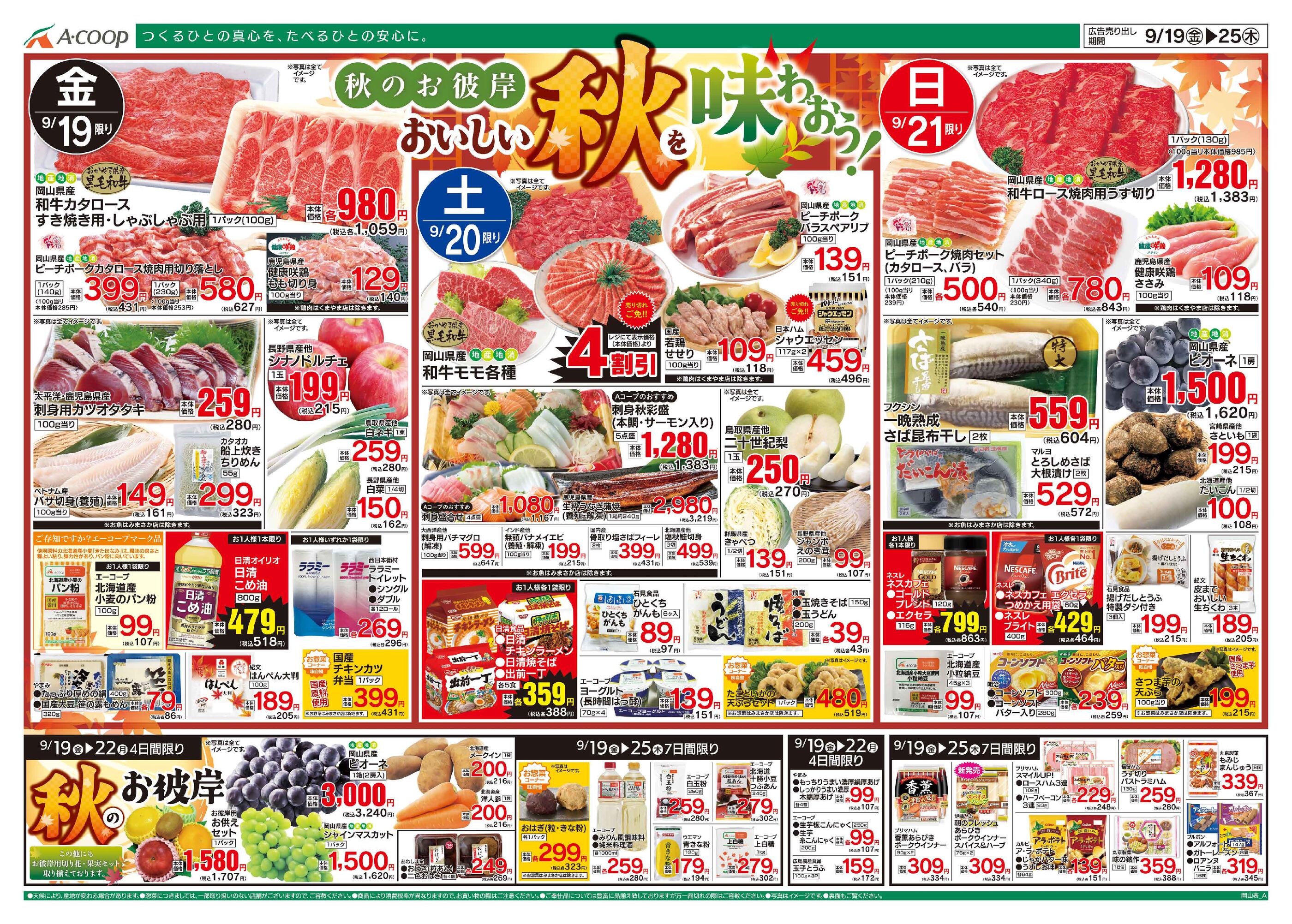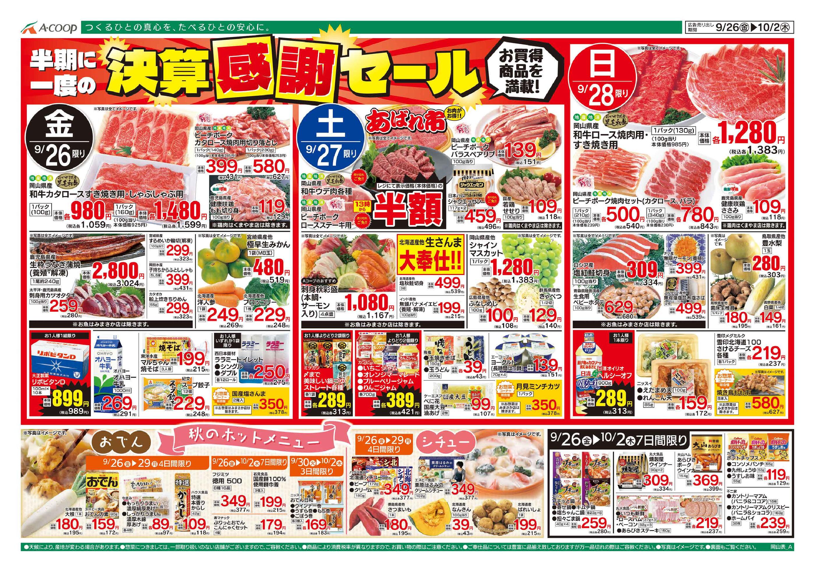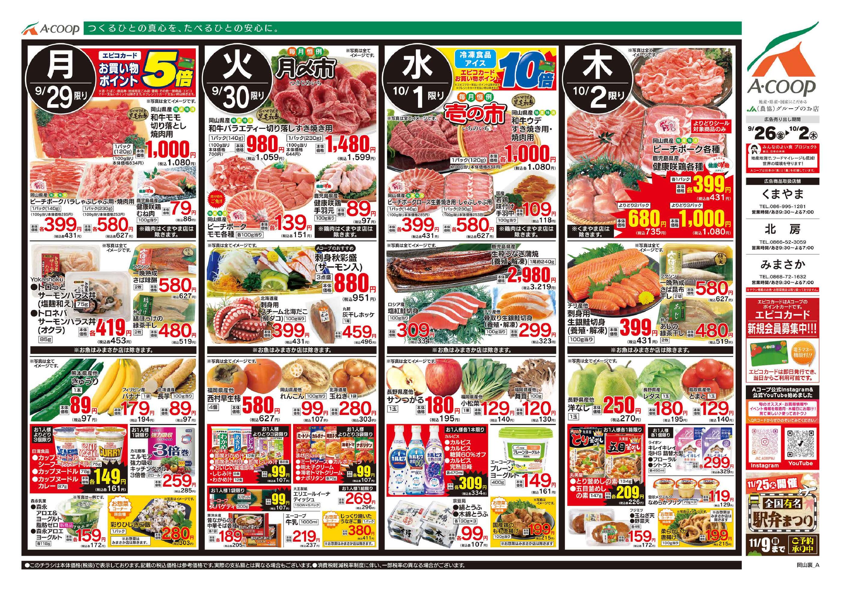 Aコープくまやま店今週のチラシ(2025年9月29日〜10月5日)