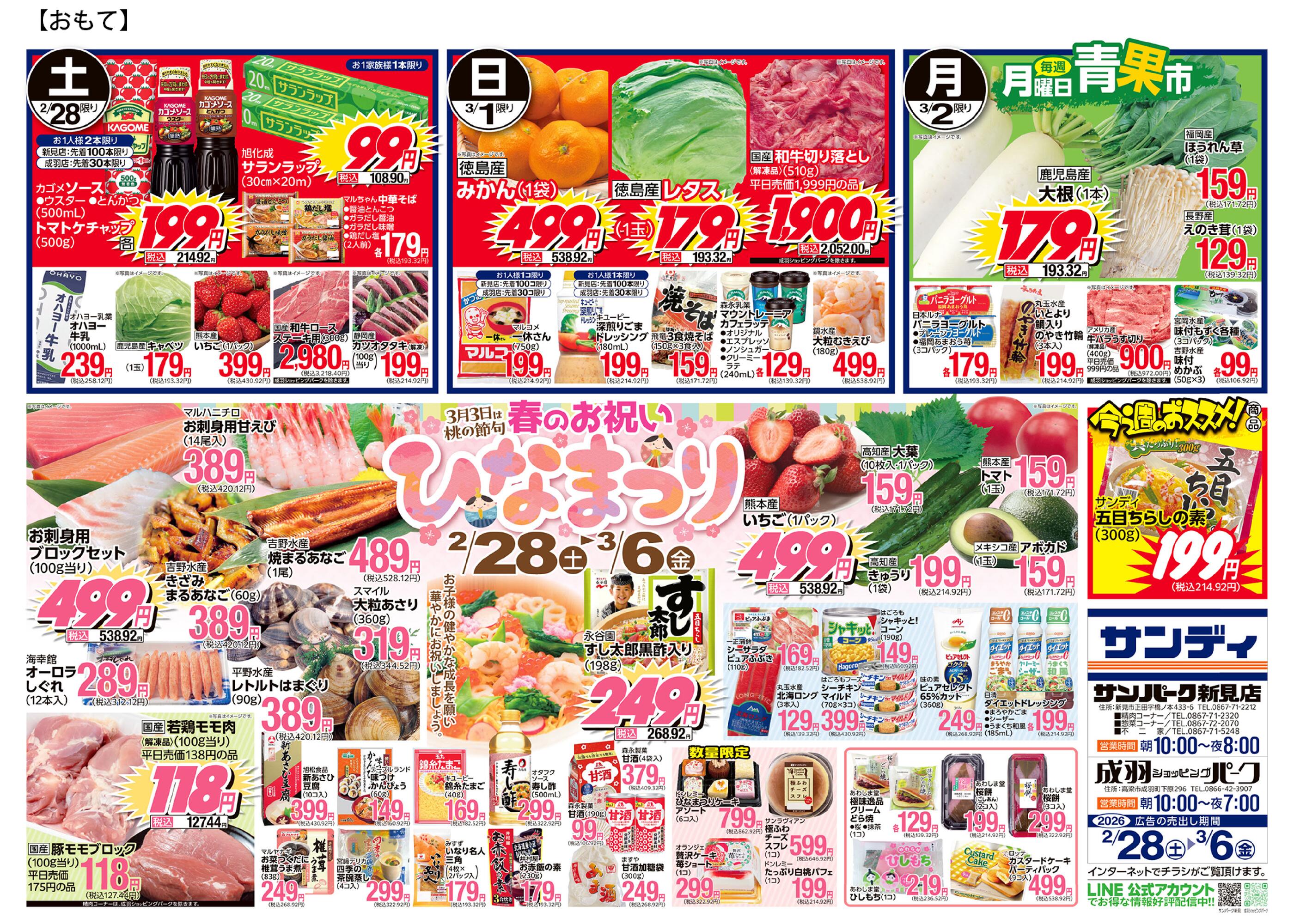 サンディ成羽ショッピングパーク今週のチラシ(2026年3月30日〜4月5日)