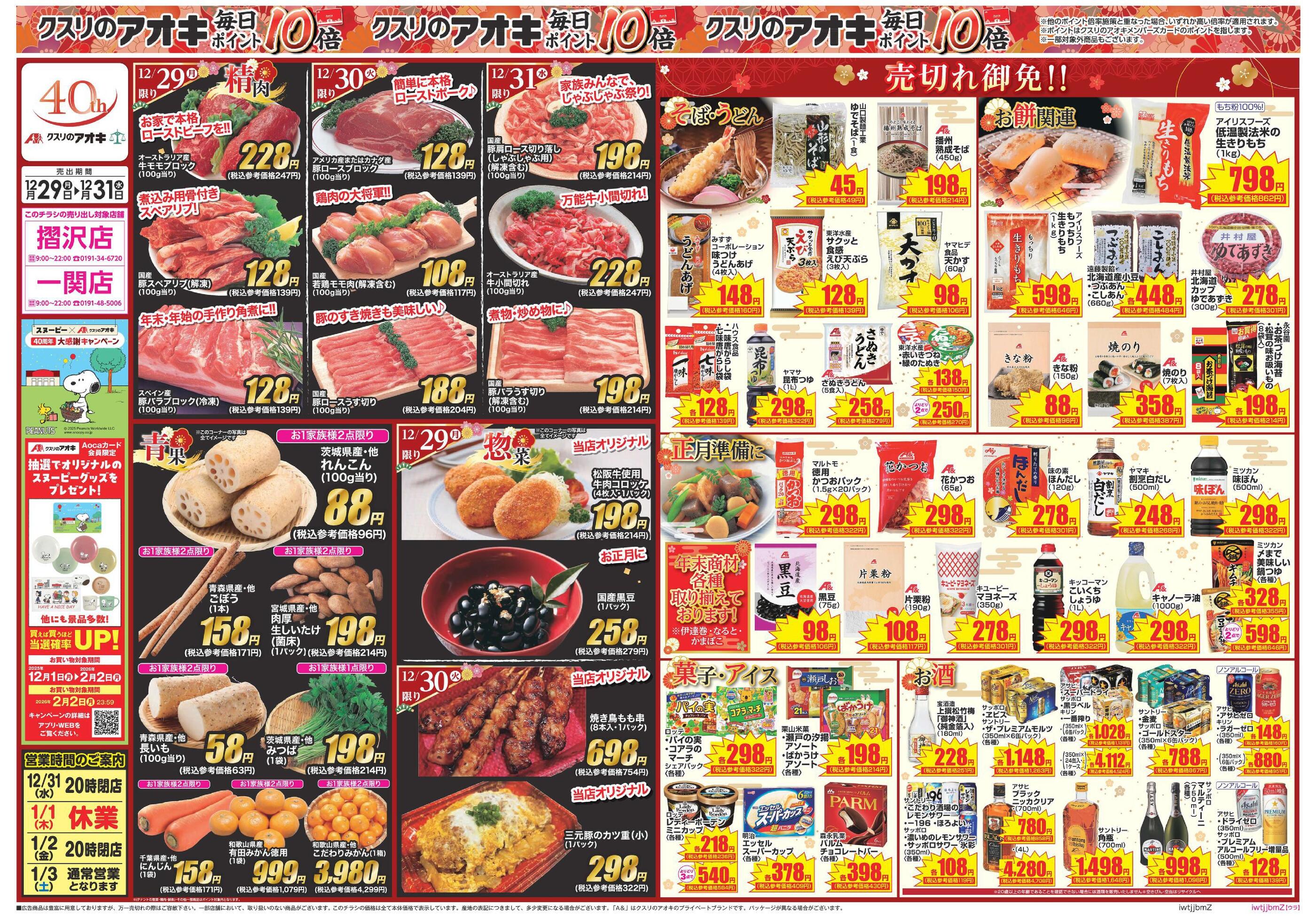 クスリのアオキ摺沢店2025-12-29更新