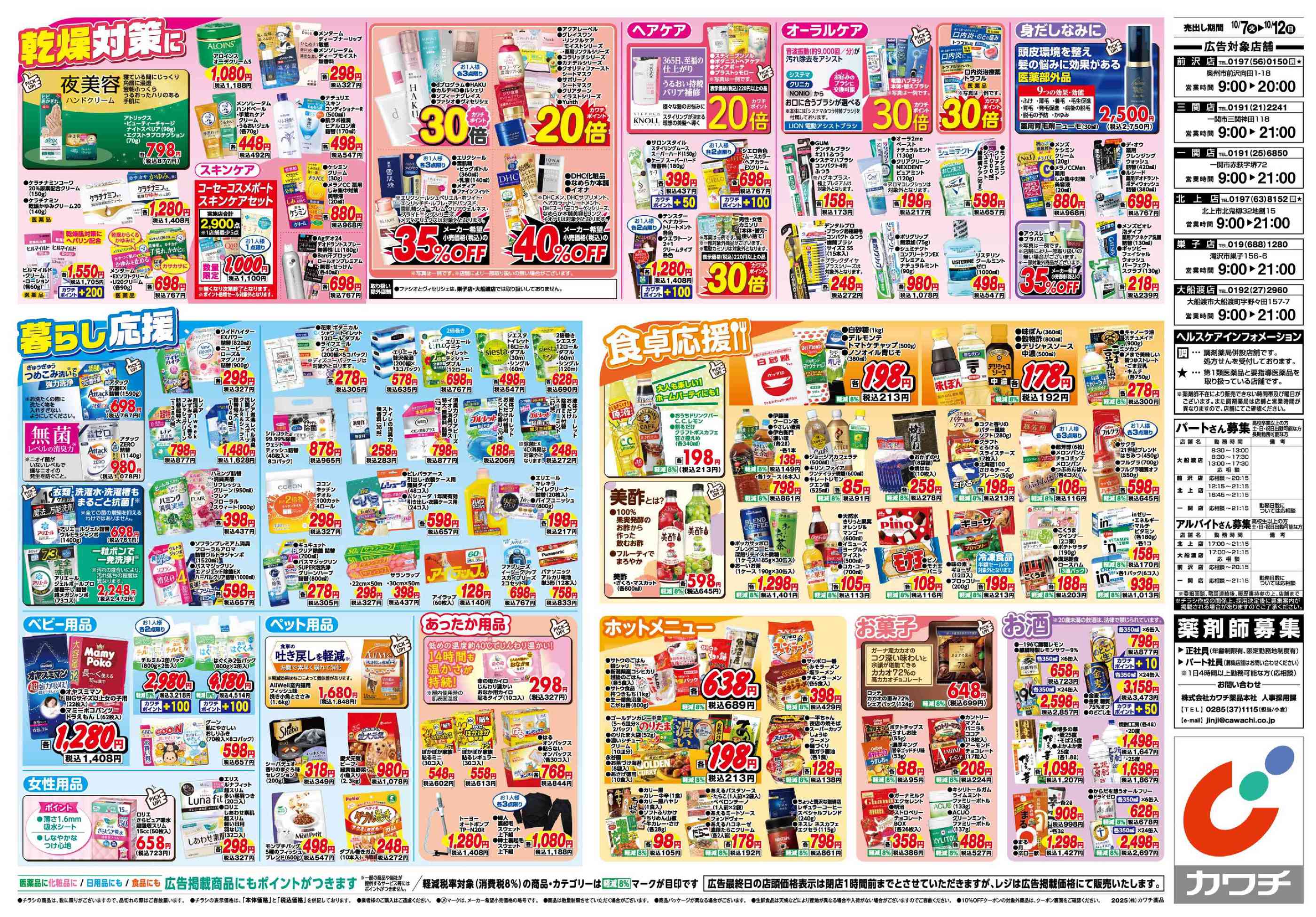 カワチ薬品一関店今週のチラシ(2025年10月6日〜10月12日)