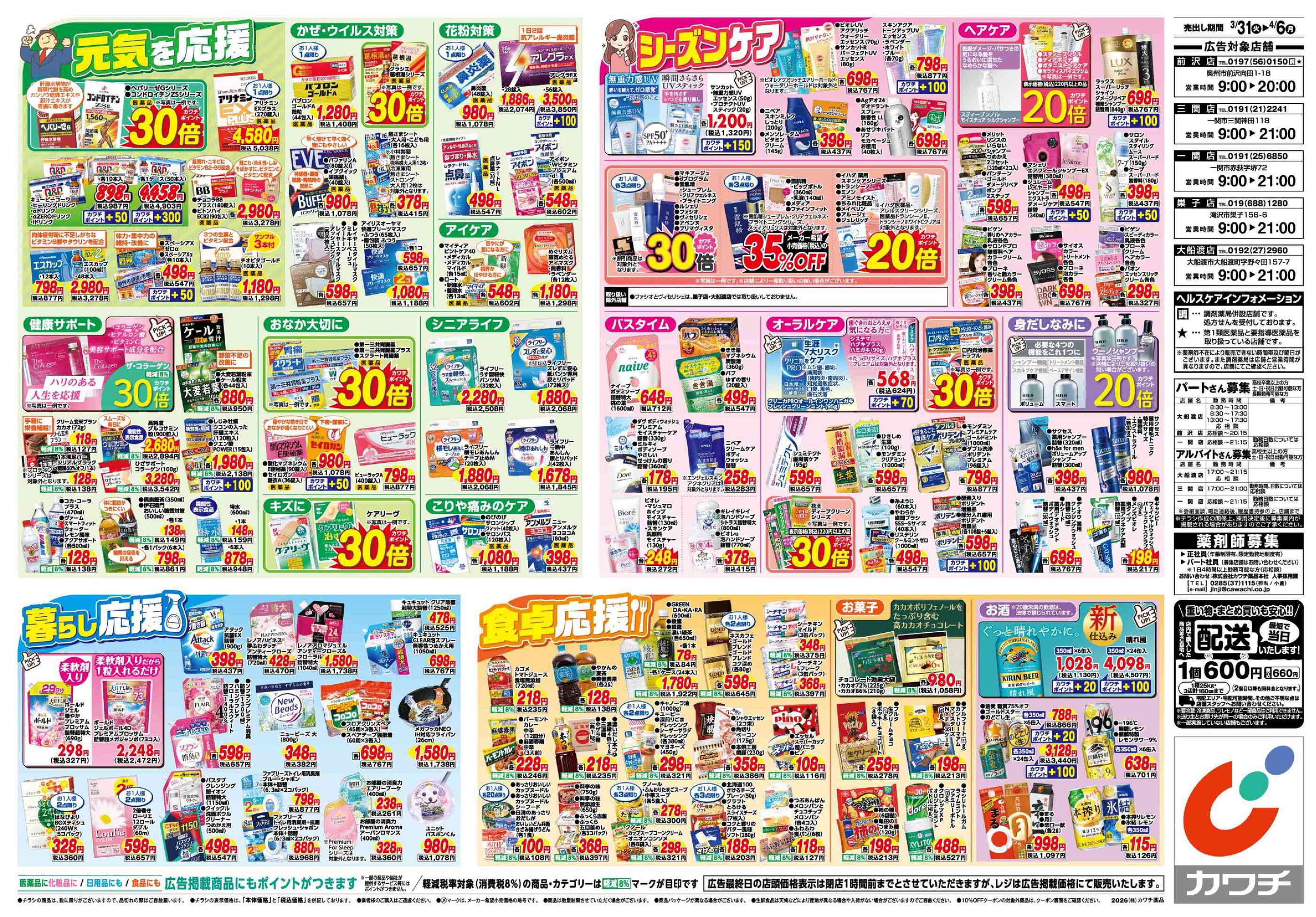 カワチ薬品三関店今週のチラシ(2026年3月30日〜4月5日)