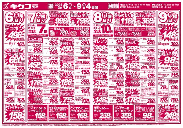 特売やセール情報など最新のチラシを掲載中。(4種類、4枚のチラシを掲載しています)