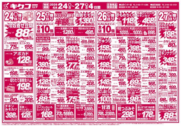特売やセール情報など最新のチラシを掲載中。(2種類、4枚のチラシを掲載しています)