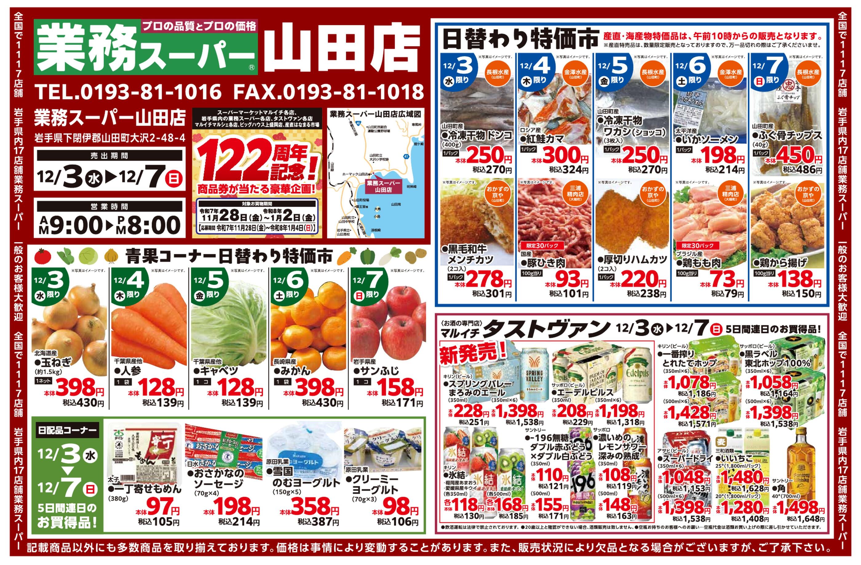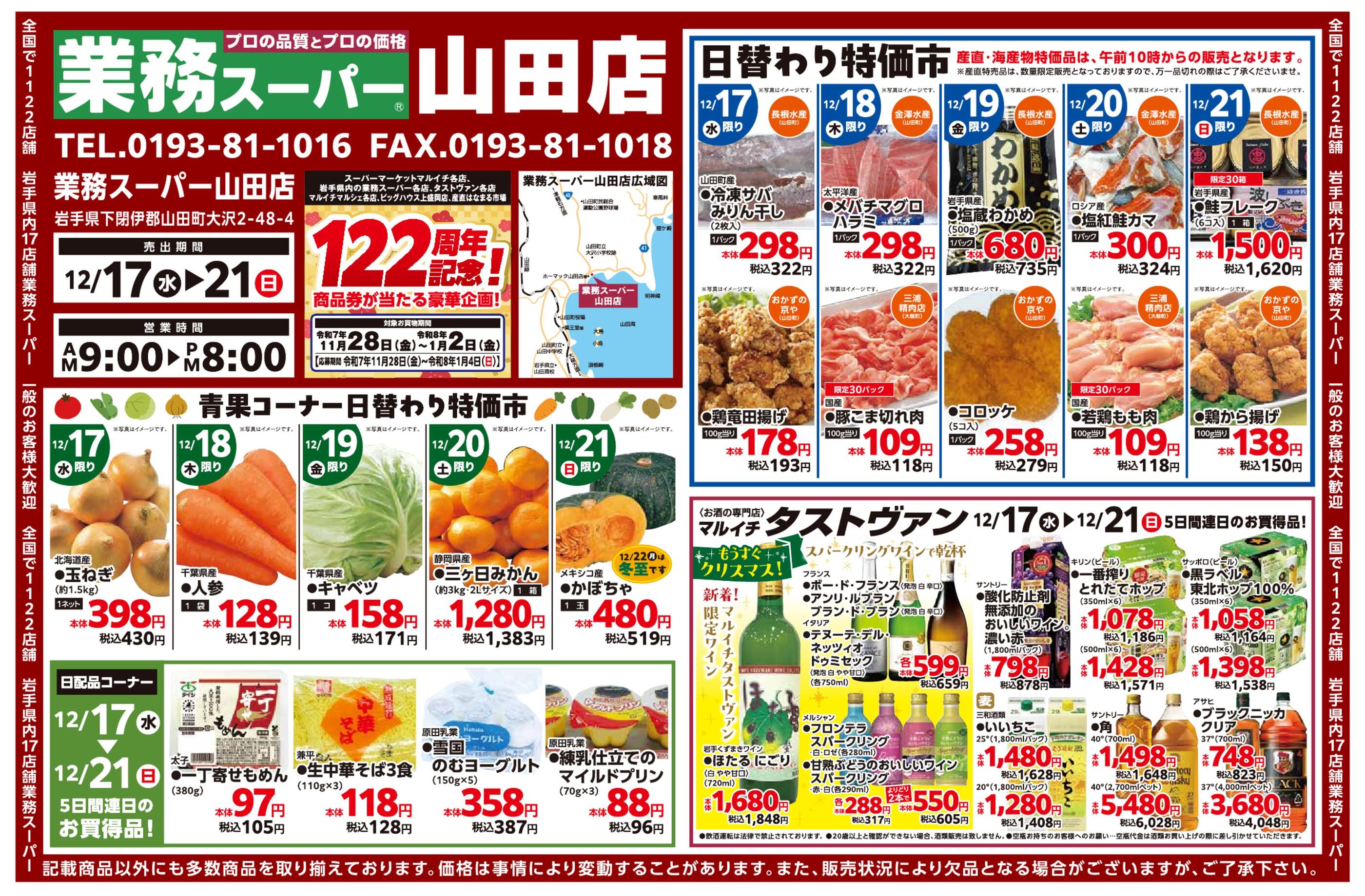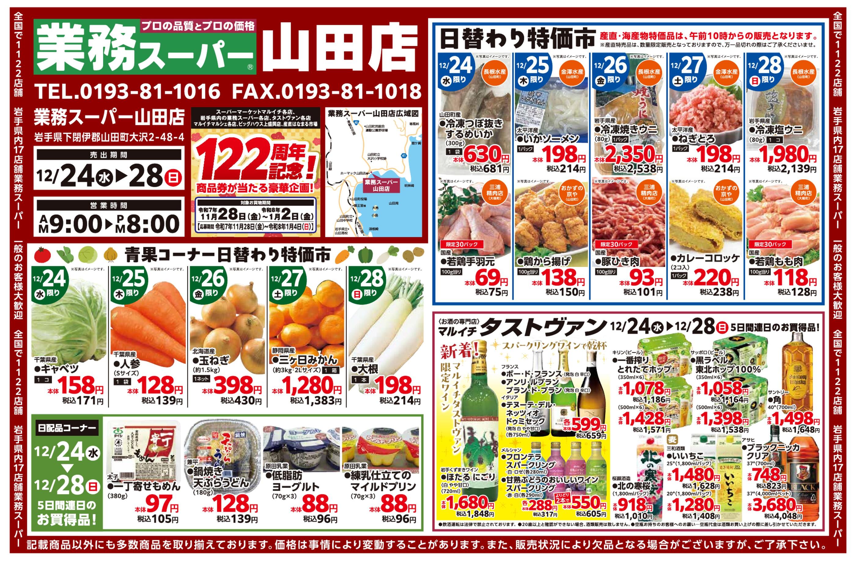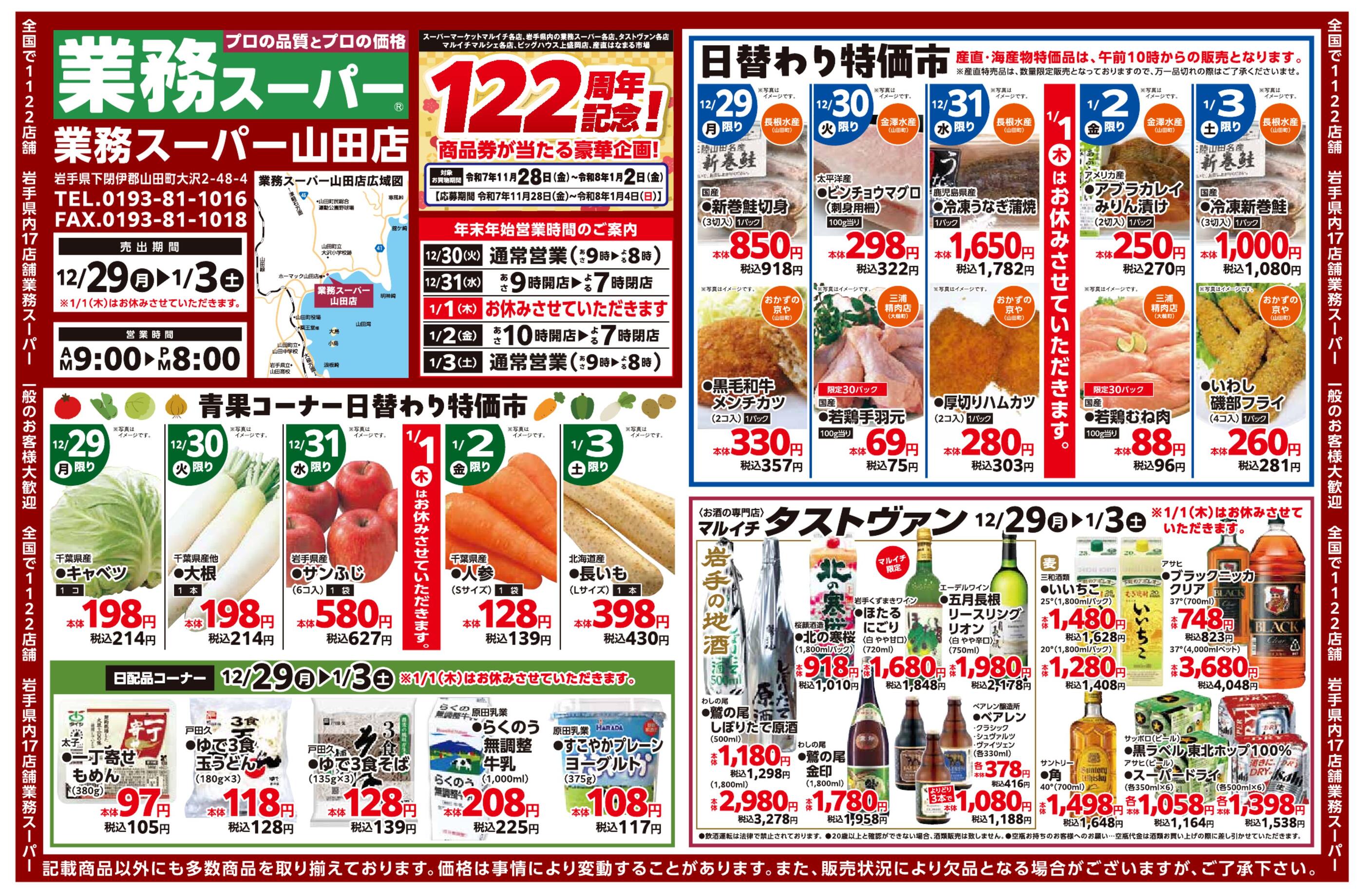 業務スーパー山田店今週のチラシ(2025年12月29日〜1月4日)