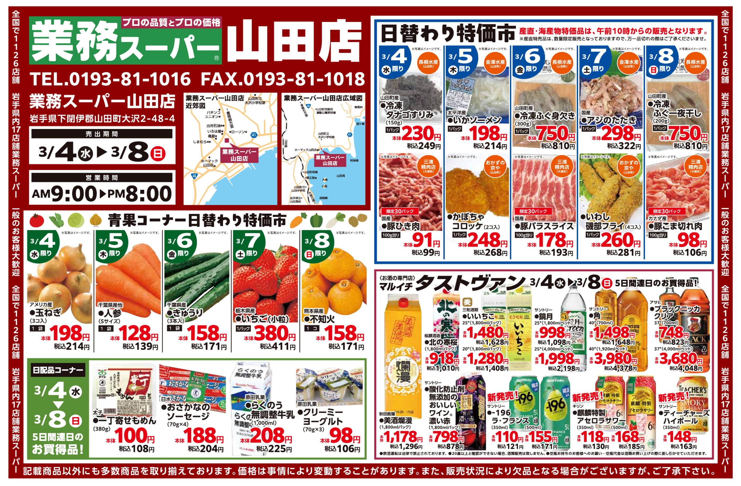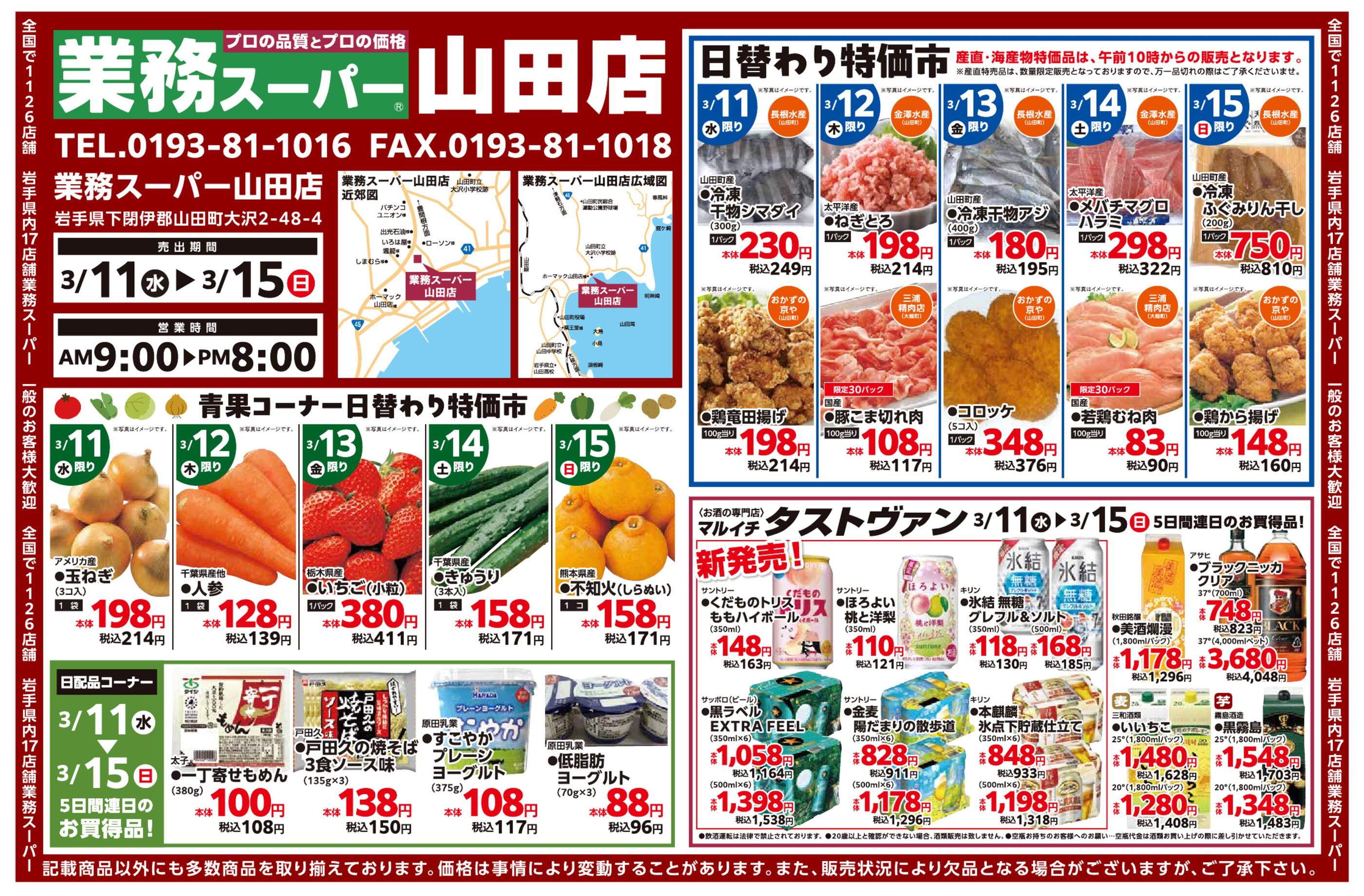 業務スーパー山田店今週のチラシ(2026年3月30日〜4月5日)
