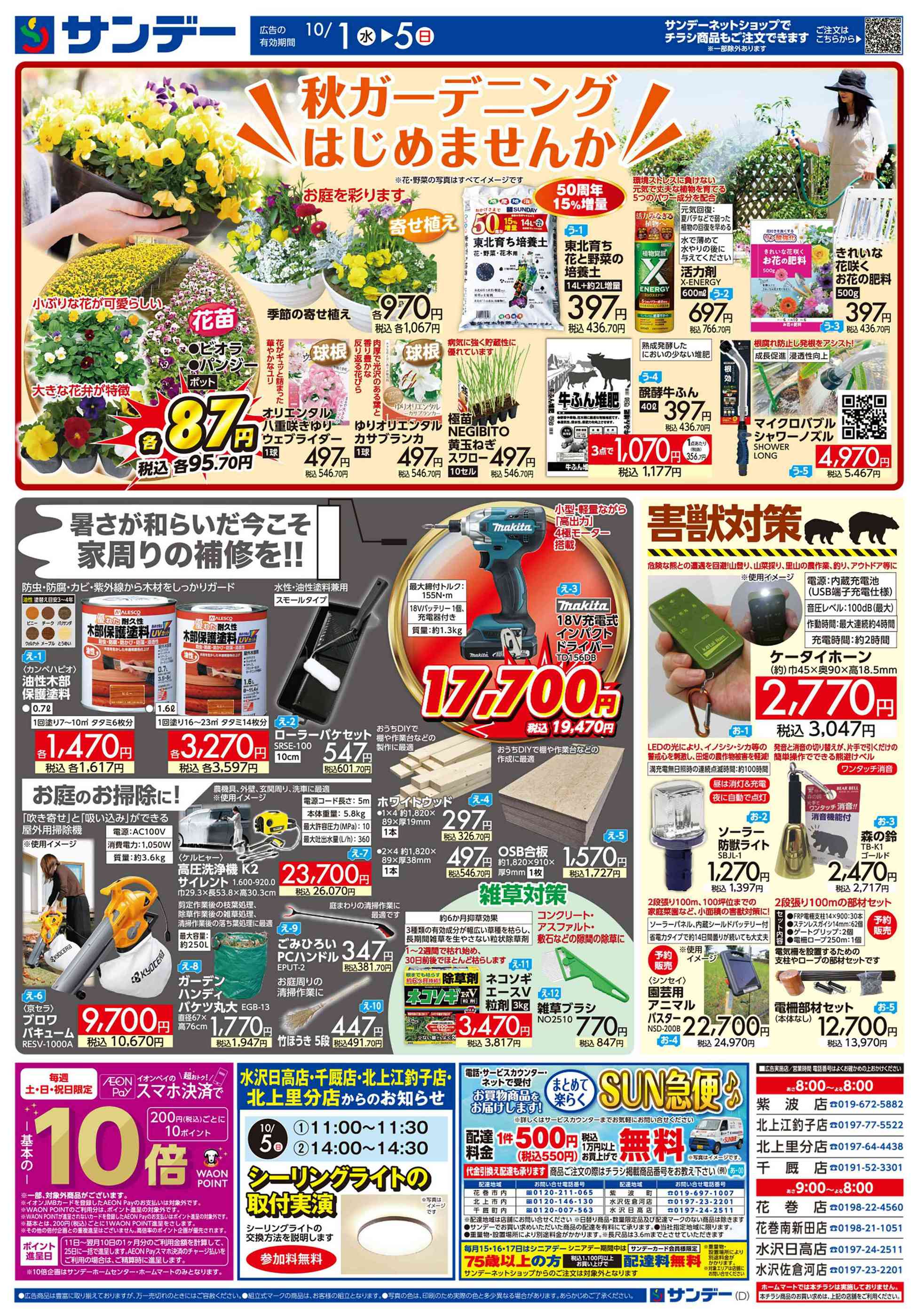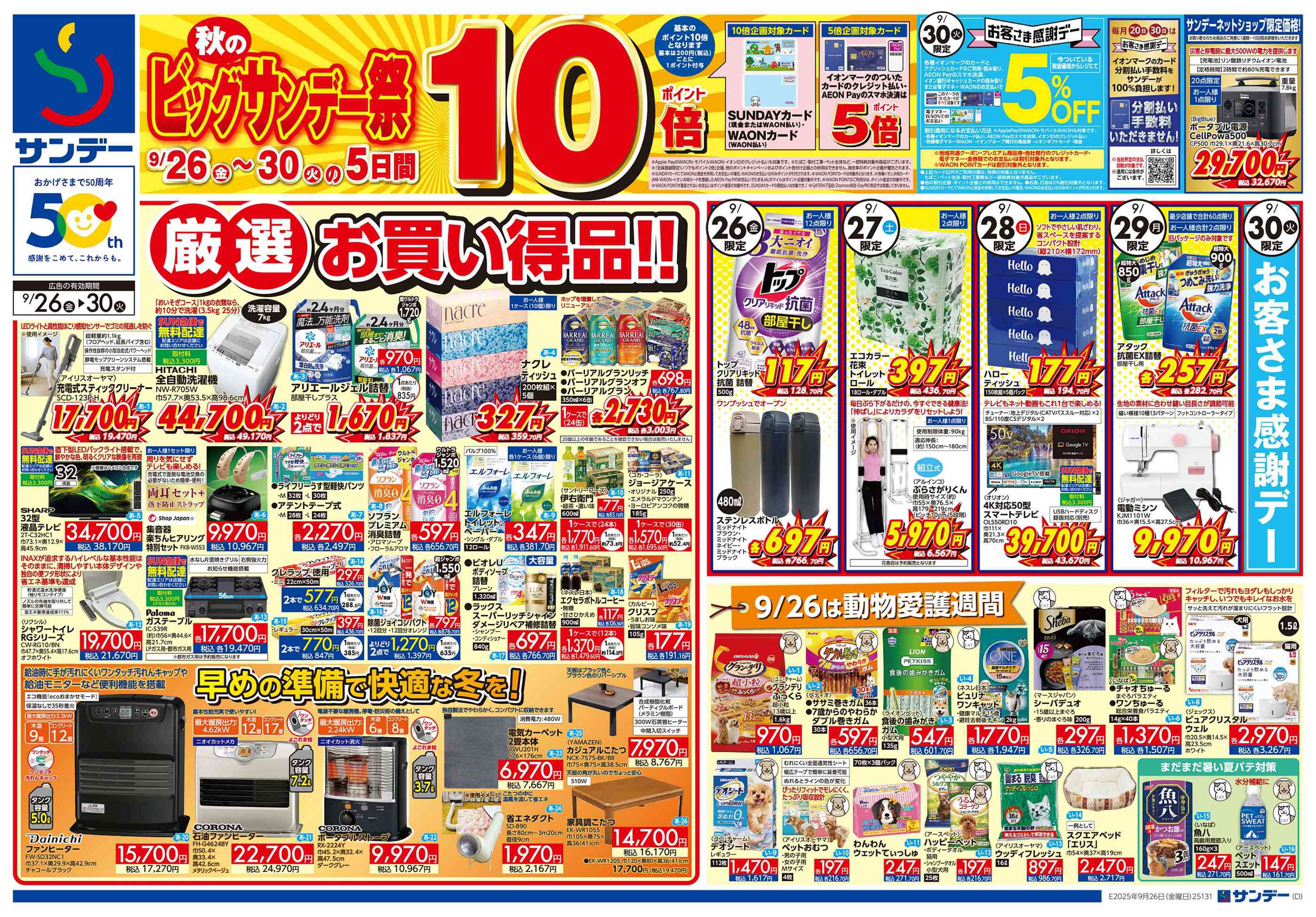 サンデー北上里分店今週のチラシ(2025年9月29日〜10月5日)